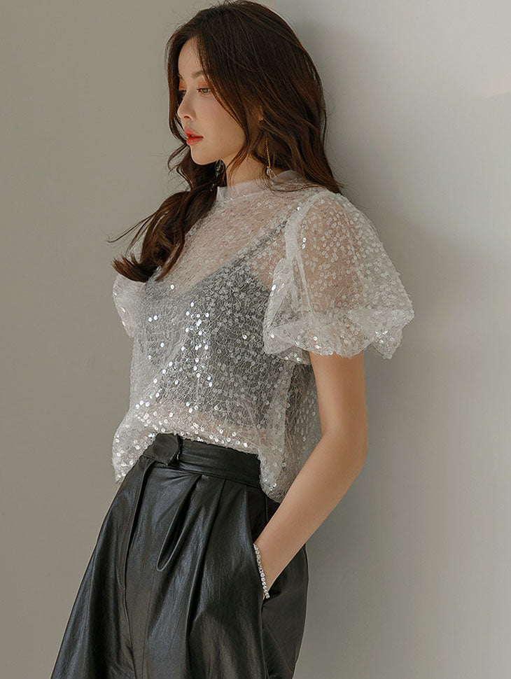 E3268 立领泡泡袖针织衫