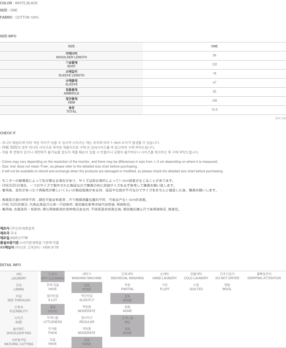 Clothing from DINT Co., Ltd. may become damaged or deformed if machine washed or tumble dried. We strongly recommend following the care instructions provided below.