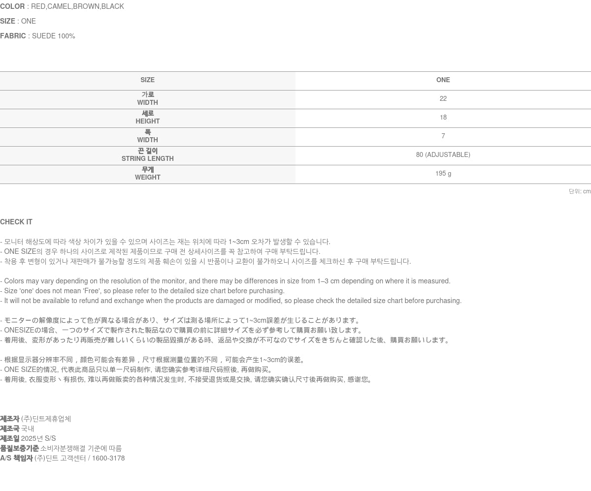 For leather and suede items, due to the nature of the material, color transfer may occur from friction or moisture. Please avoid contact with light-colored clothing or bags.