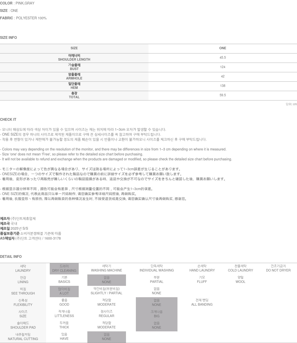 Clothing from DINT Co., Ltd. may become damaged or deformed if machine washed or tumble dried. We strongly recommend following the care instructions provided below.