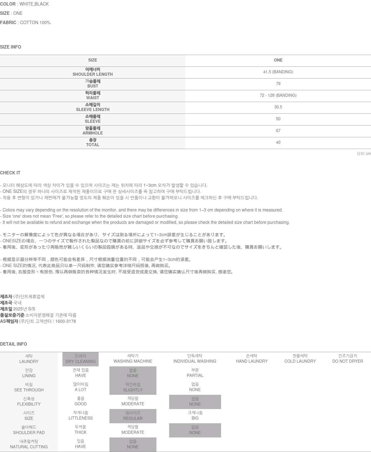 Clothing from DINT Co., Ltd. may become damaged or deformed if machine washed or tumble dried. We strongly recommend following the care instructions provided below.