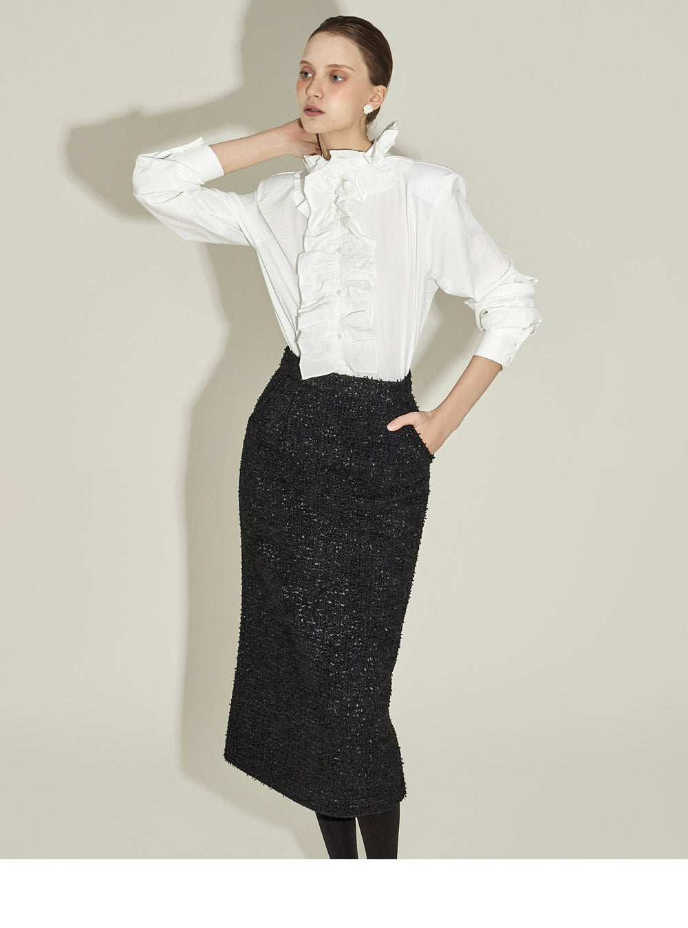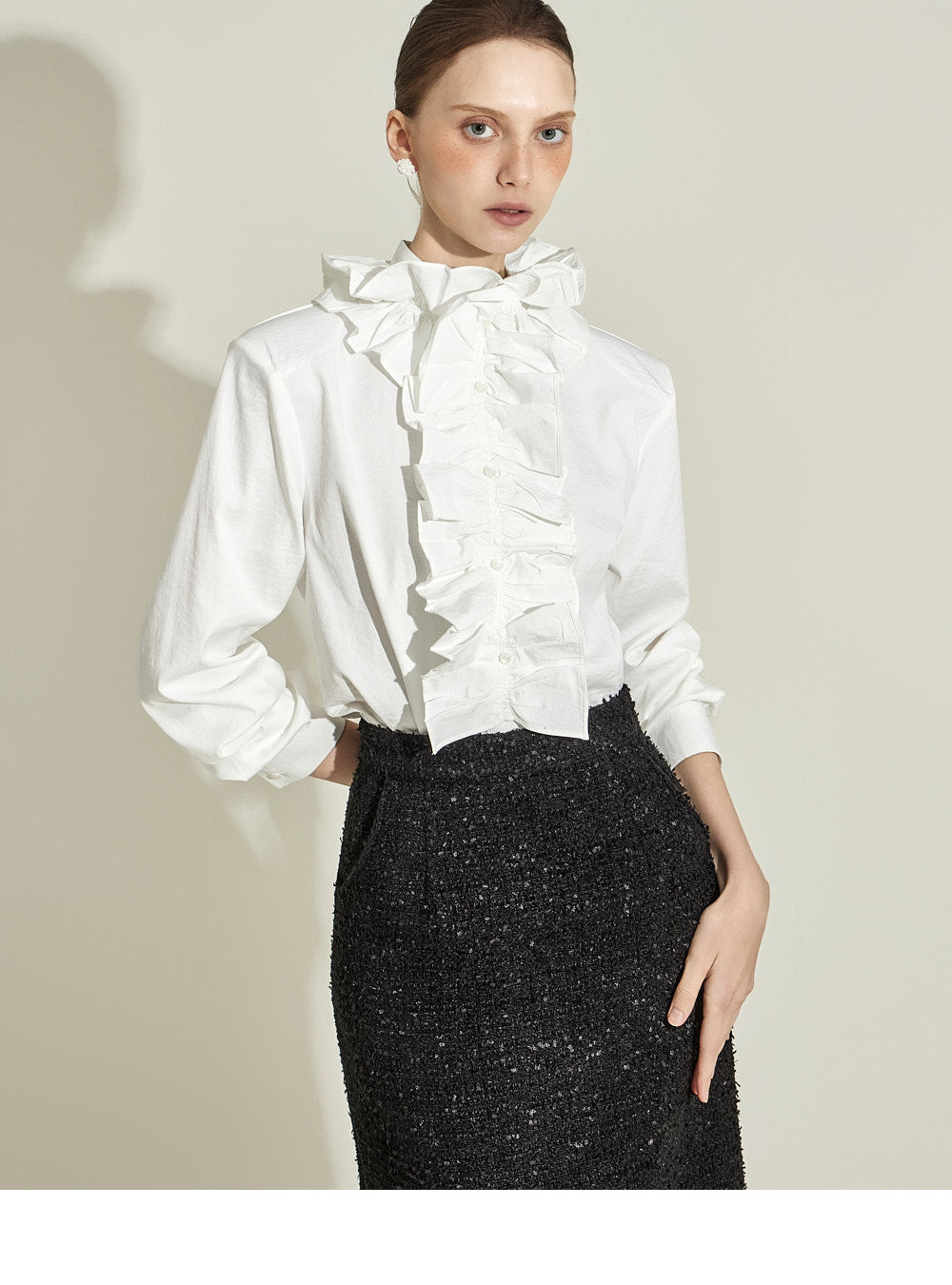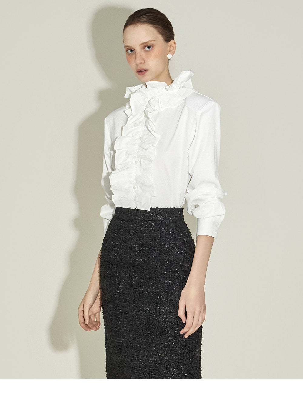 This sophisticated frill blouse is perfect for a sophisticated look.