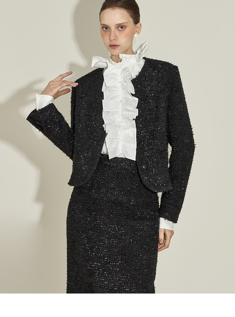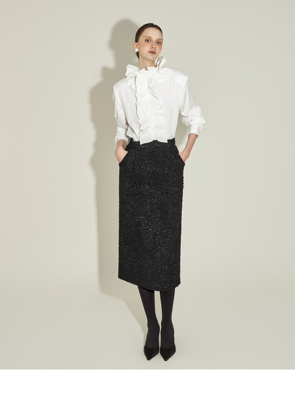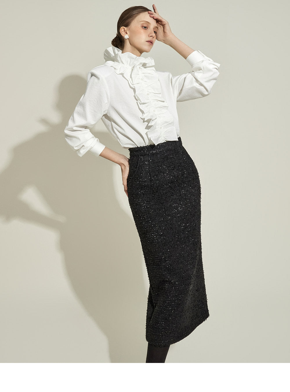 This sophisticated frill blouse is perfect for a sophisticated look.