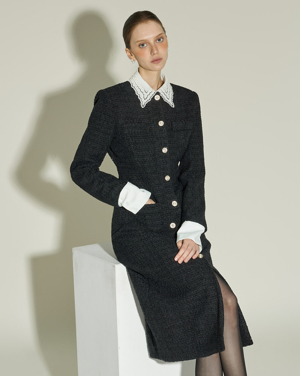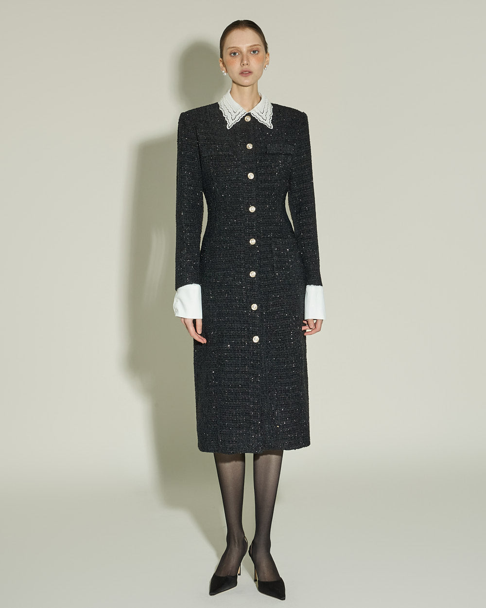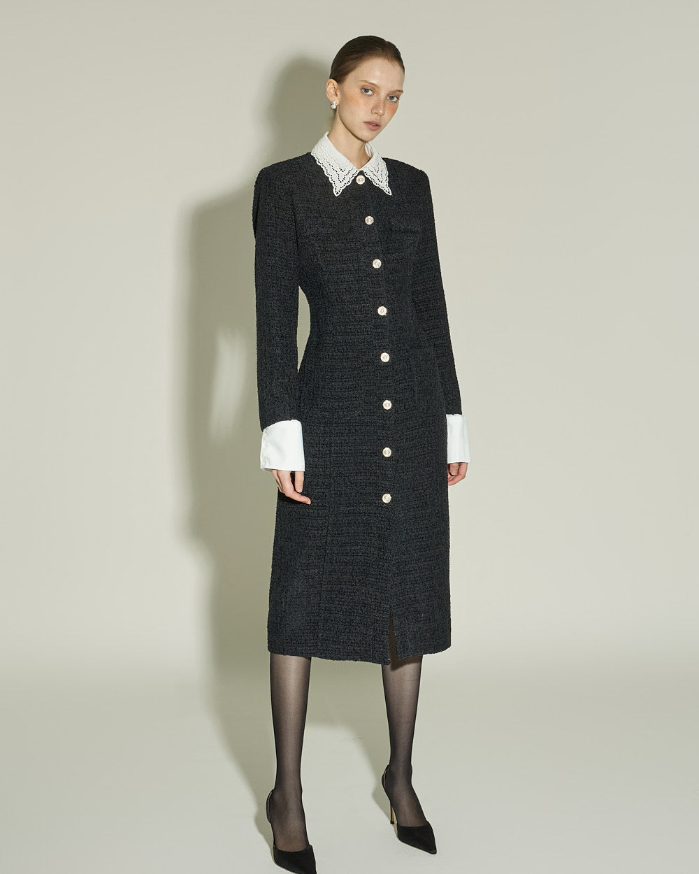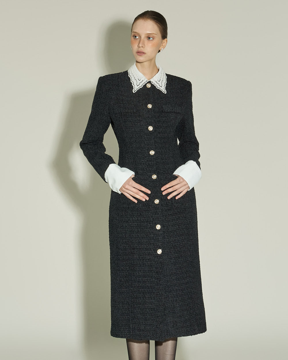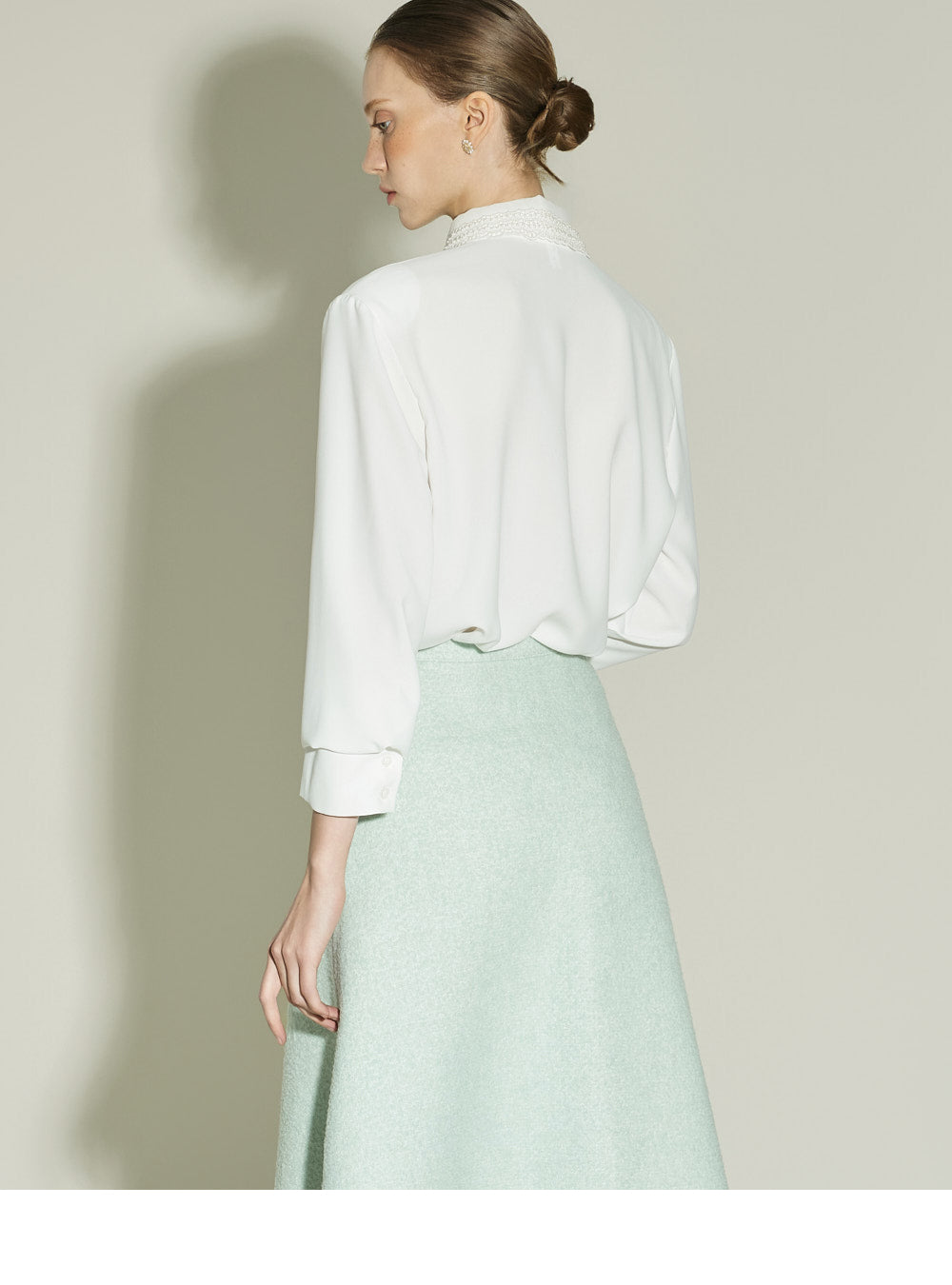 The perforated lace detailing along the collar adds a lovely, romantic touch,