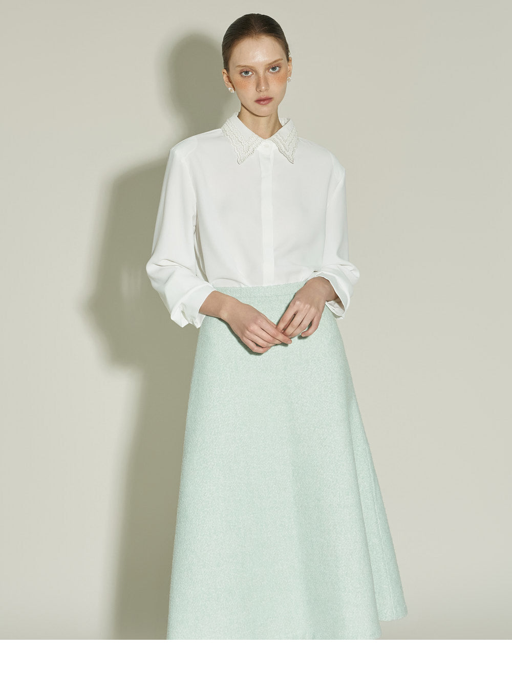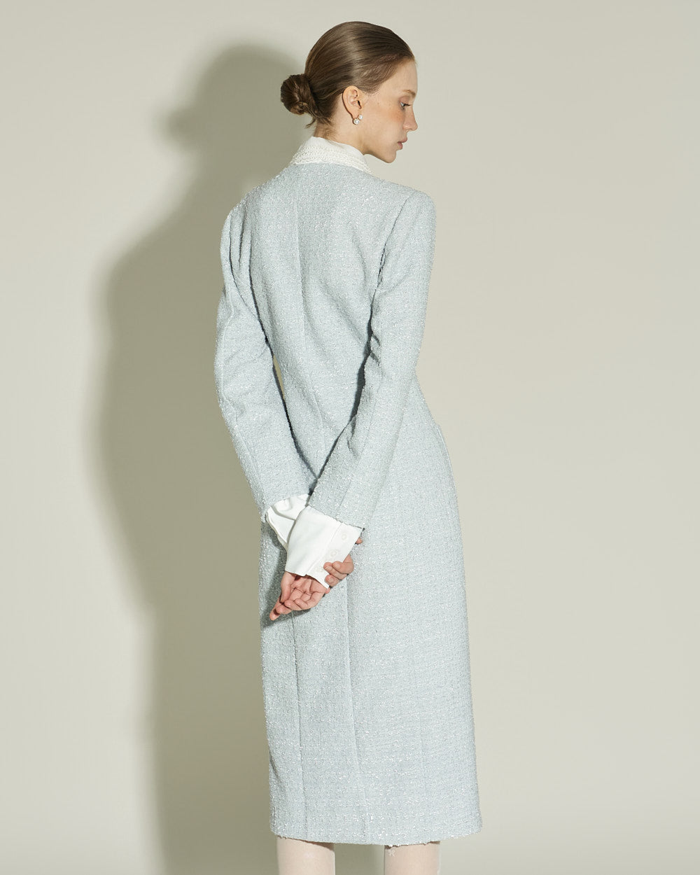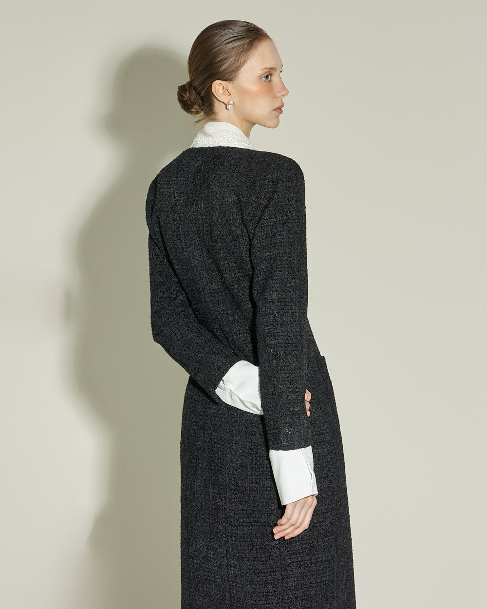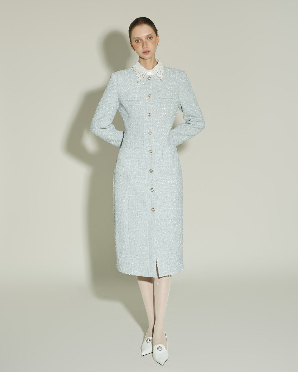 The perforated lace detailing along the collar adds a lovely, romantic touch,