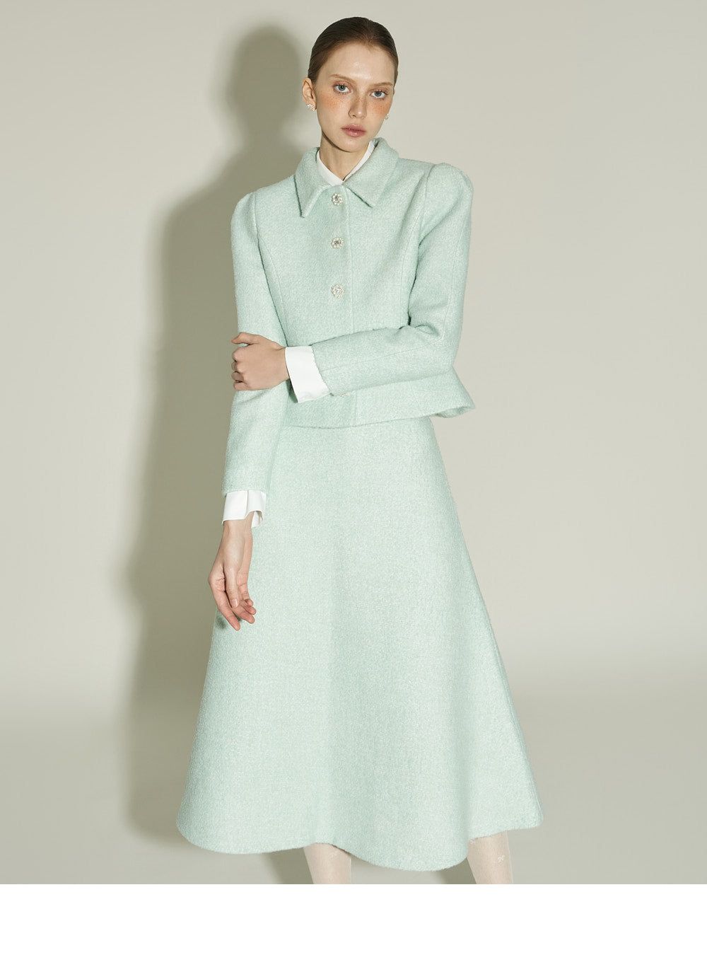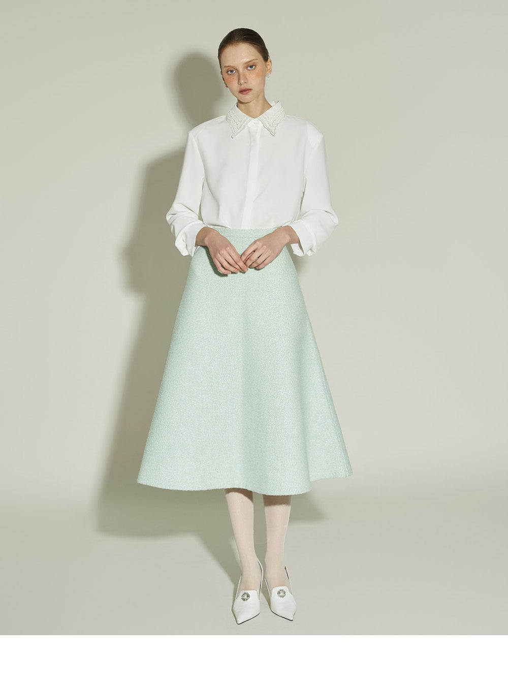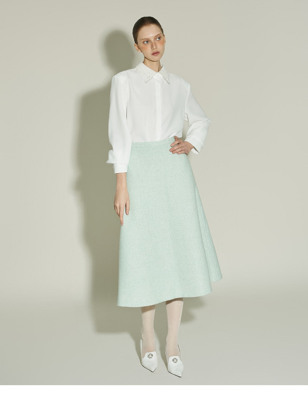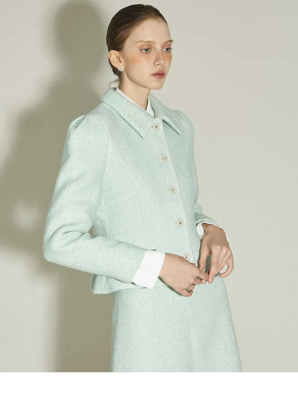 The perforated lace detailing along the collar adds a lovely, romantic touch,