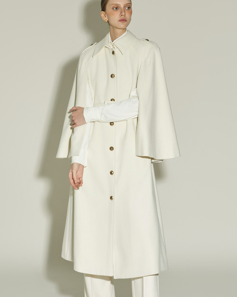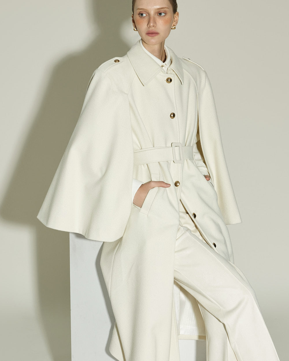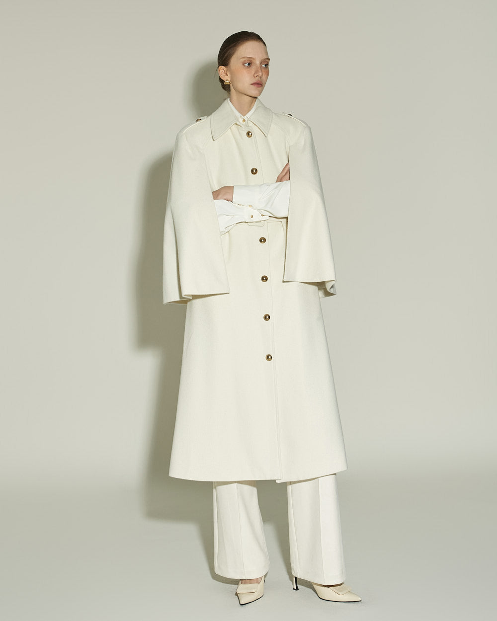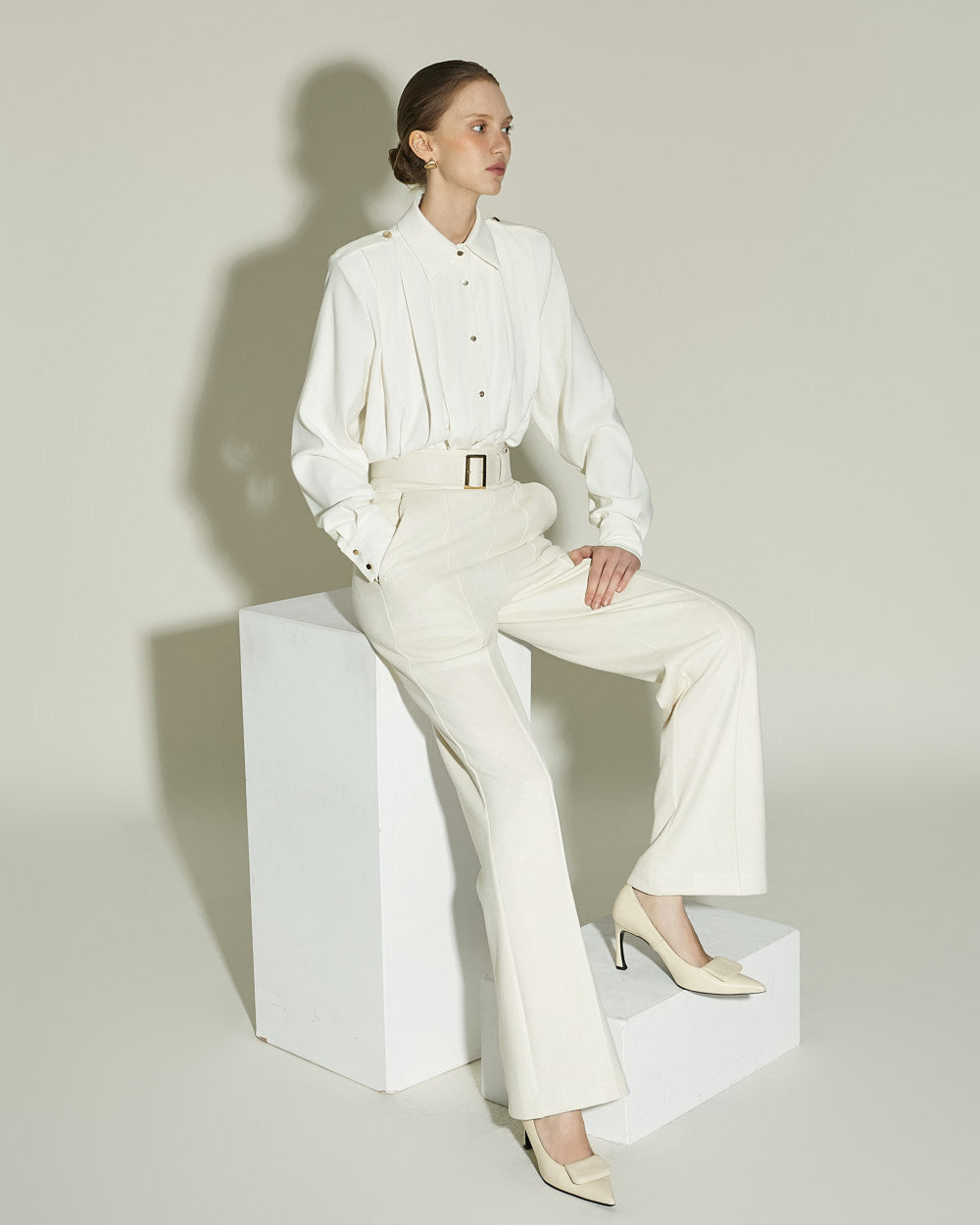 The shoulder epaulettes and moderate padding complete the sophisticated silhouette,