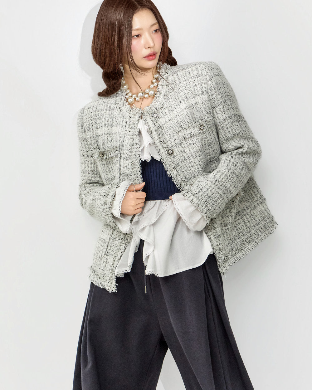 The frill detailing naturally extends from the neckline,