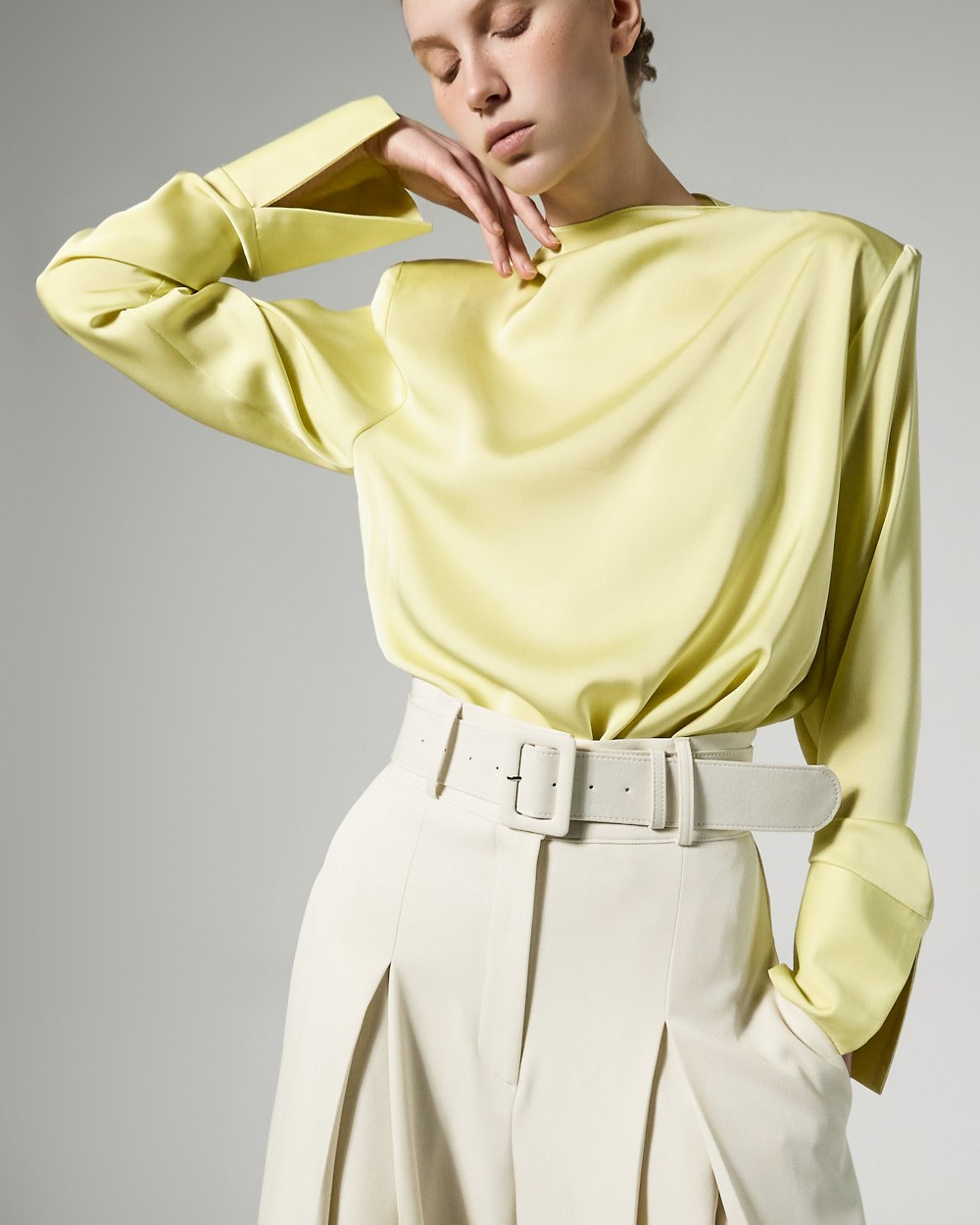 The slightly raised neckline creates a natural,