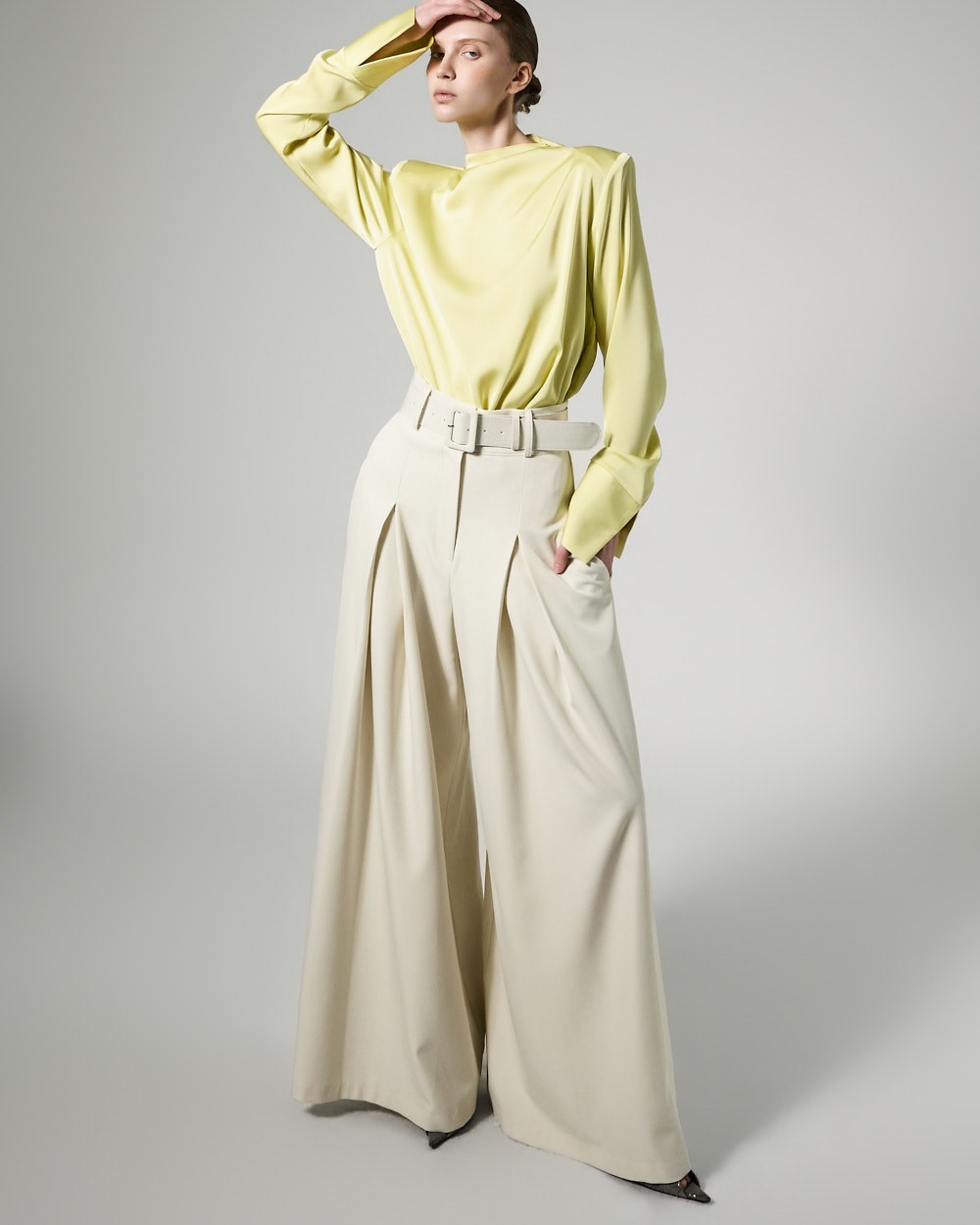 The 174cm model is wearing size ONE in YELLOW.