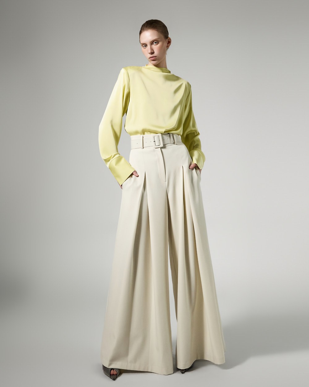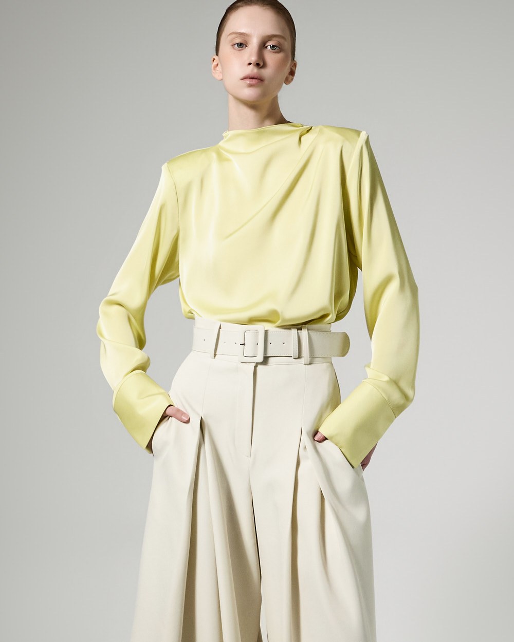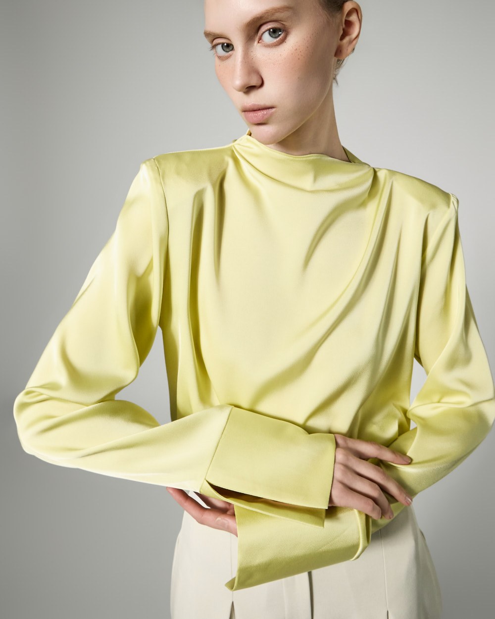 This neck drape blouse exudes an elegant and sophisticated vibe.