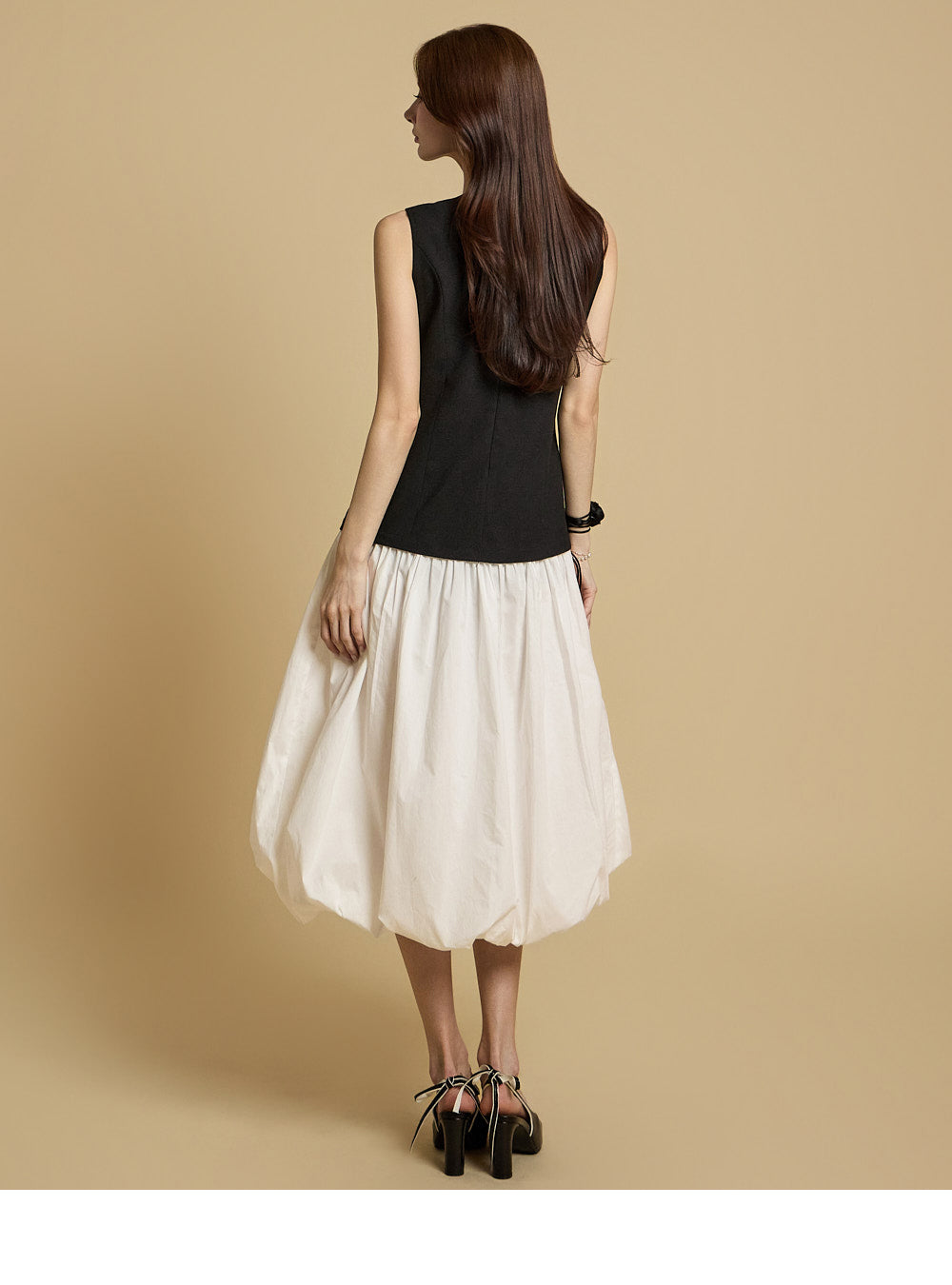 It features a back zipper for easy wear and a natural fit without shoulder pads.