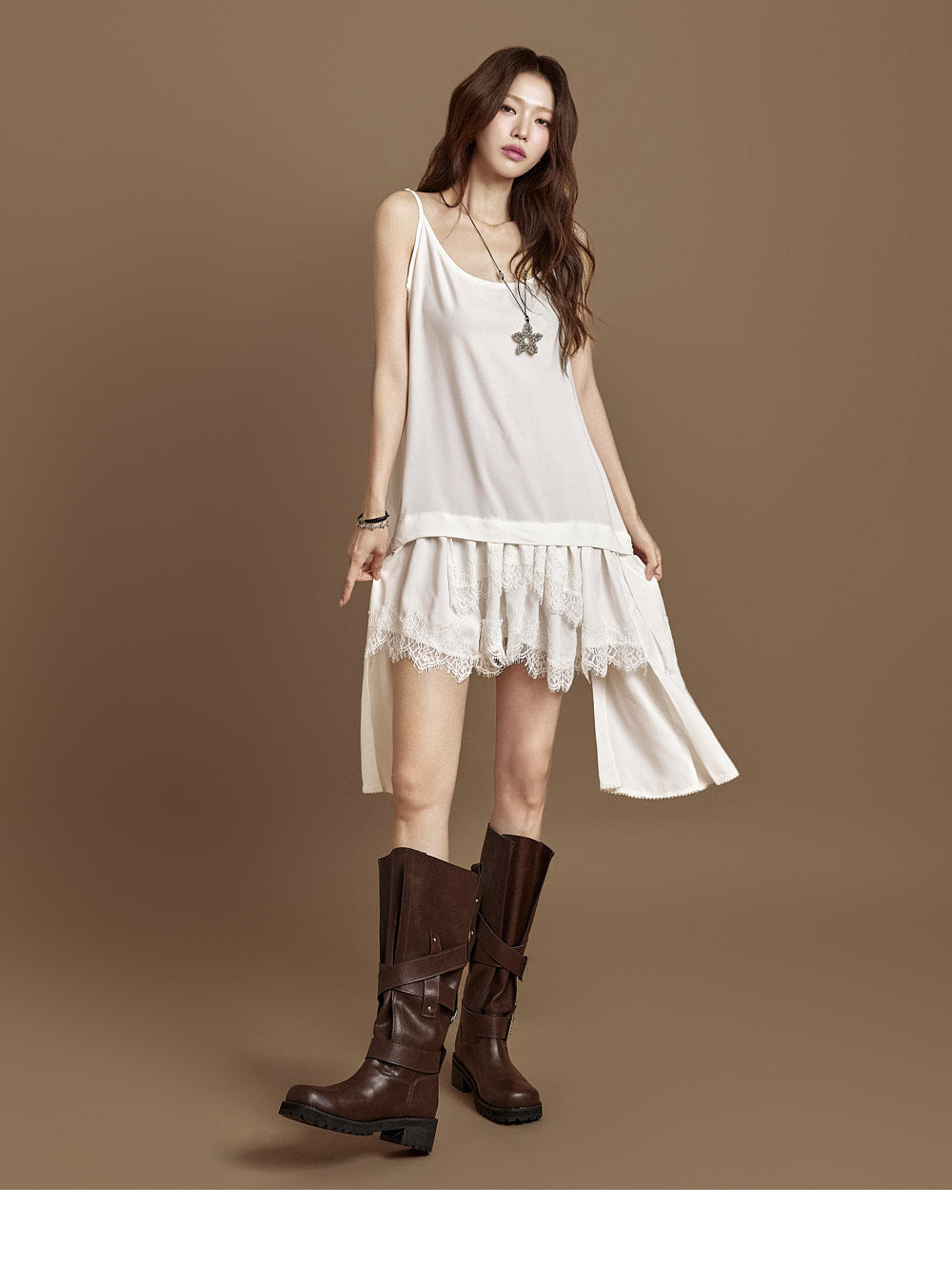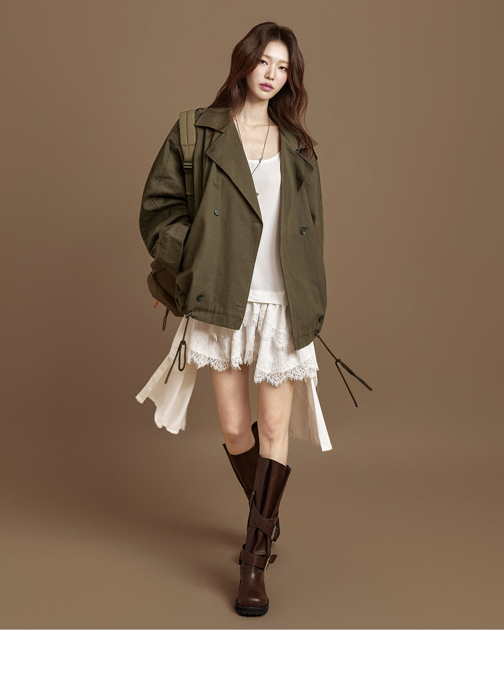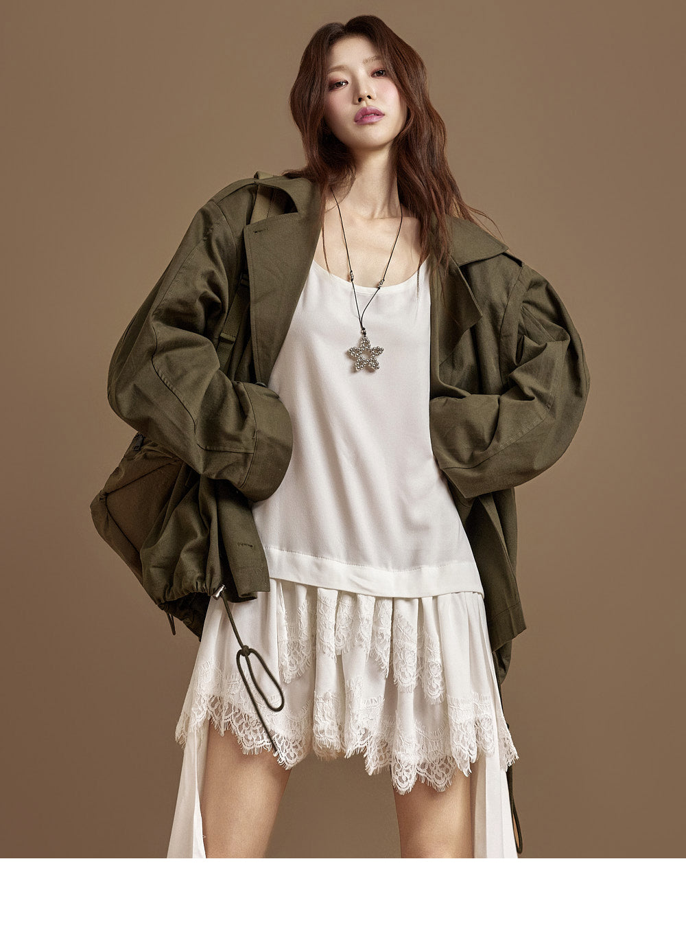 The 171cm model is wearing size ONE in IVORY.
