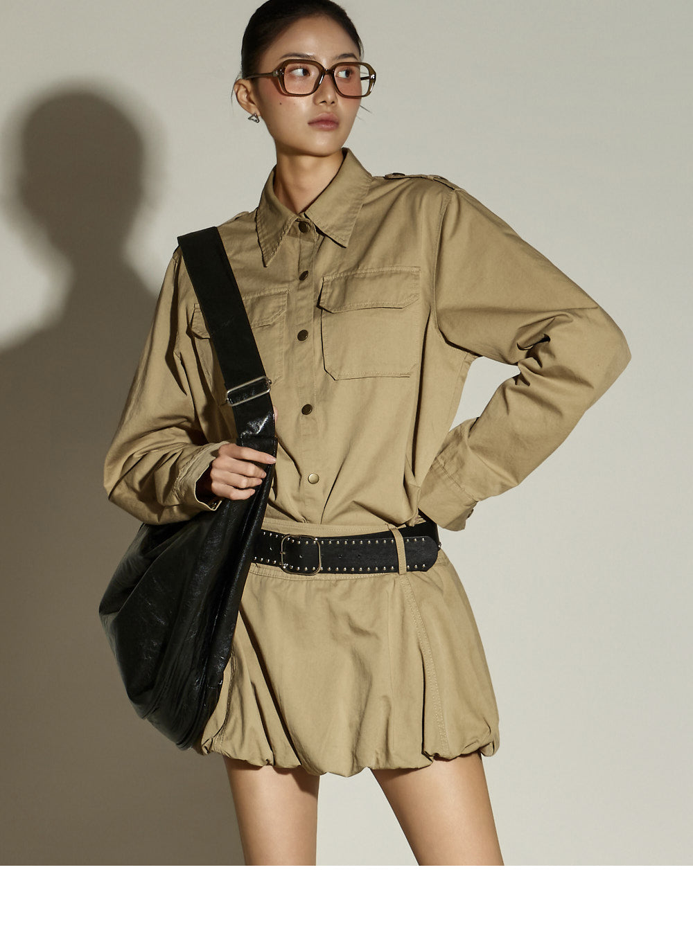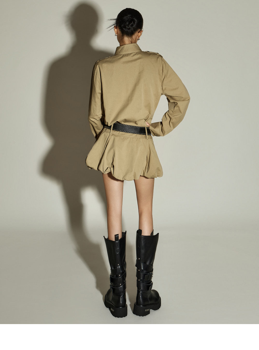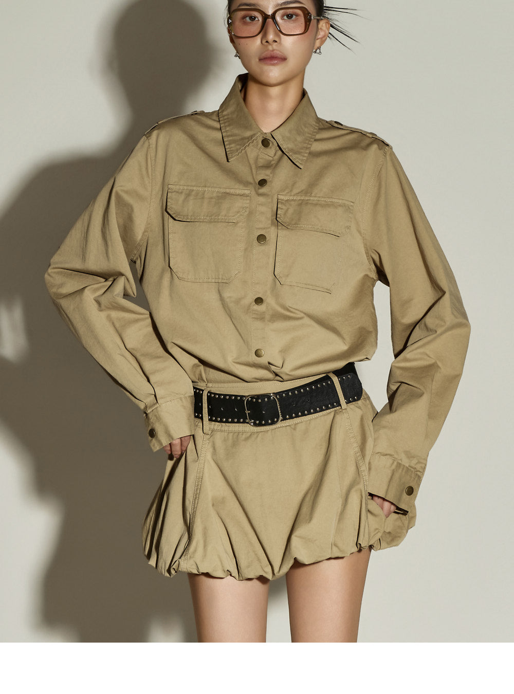 The bottom features a balloon-style miniskirt,