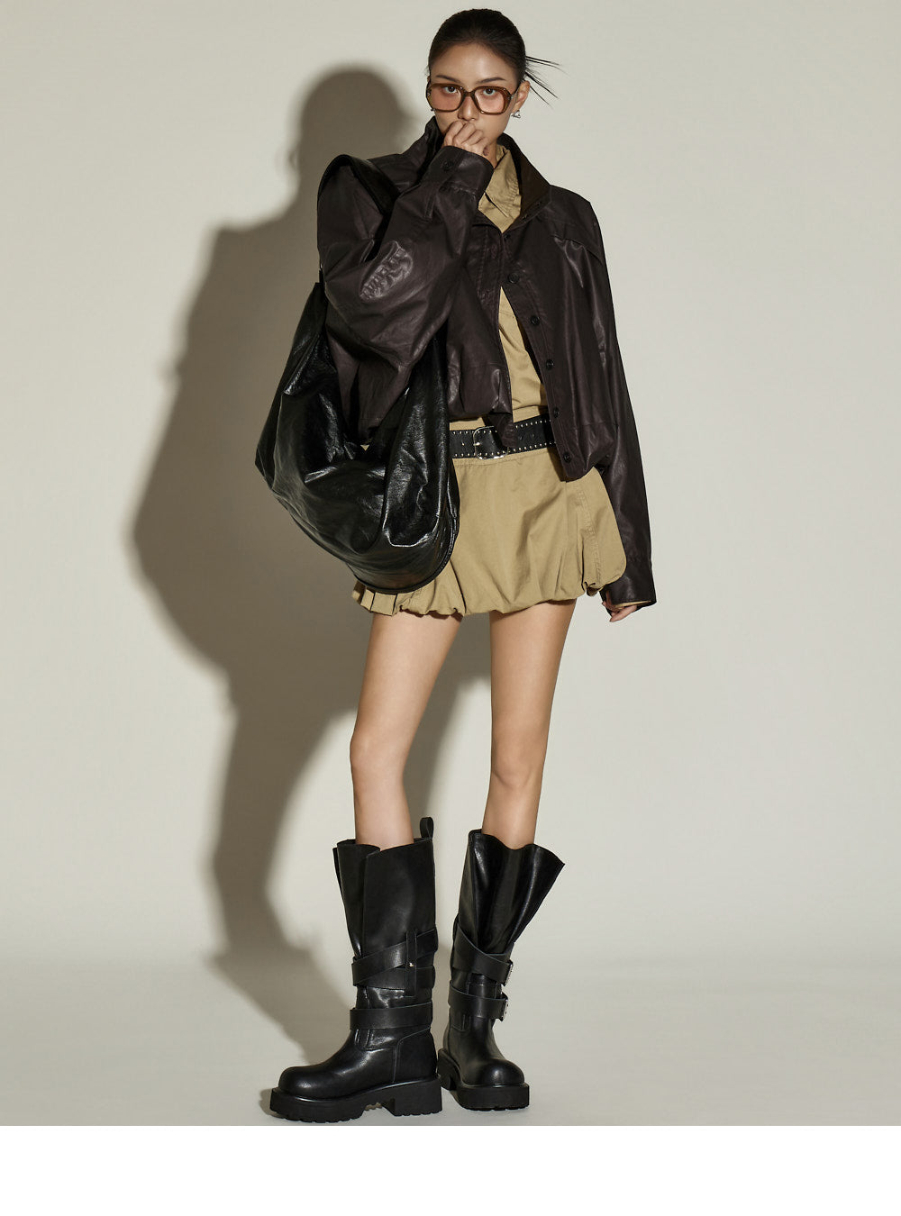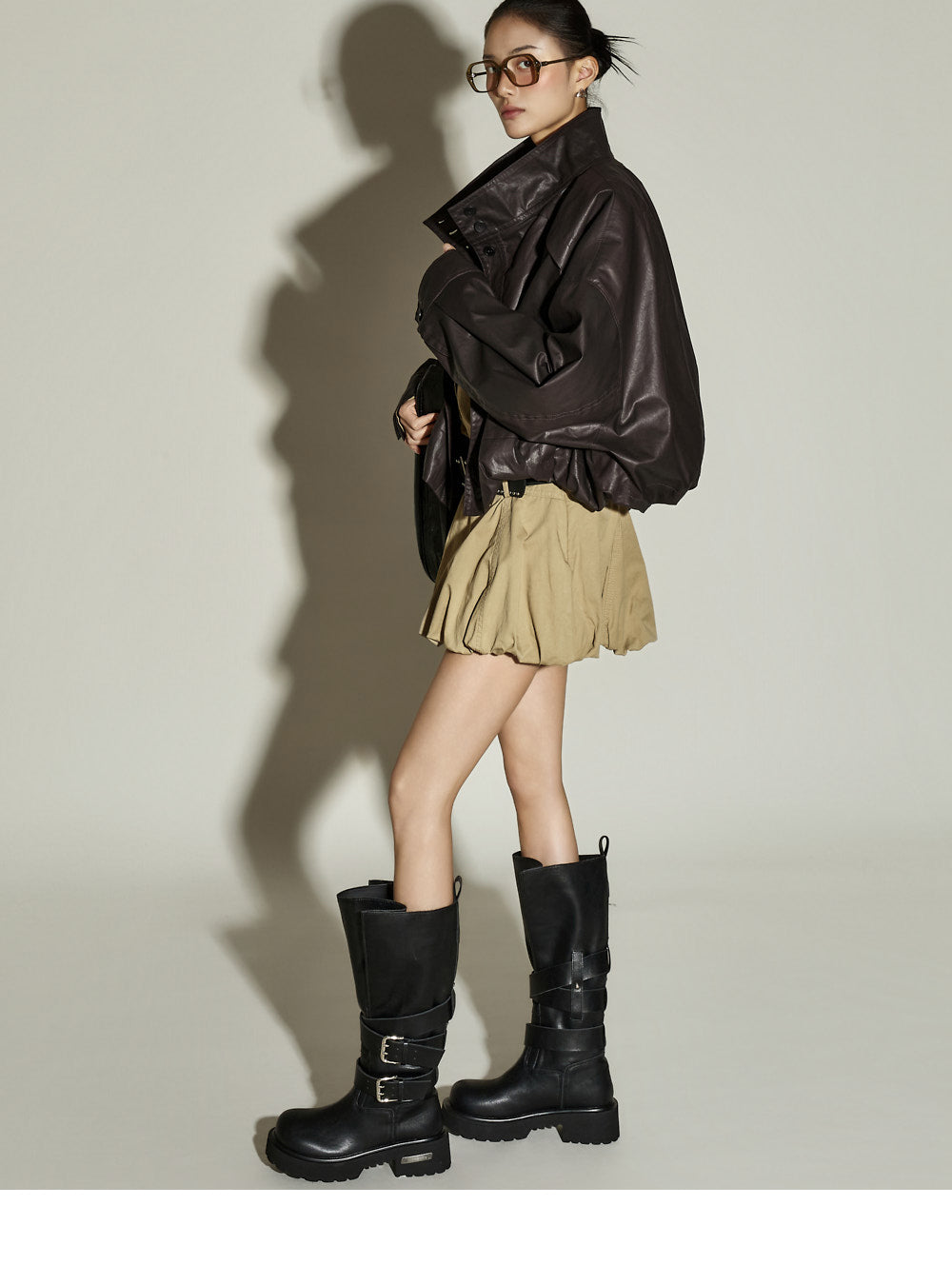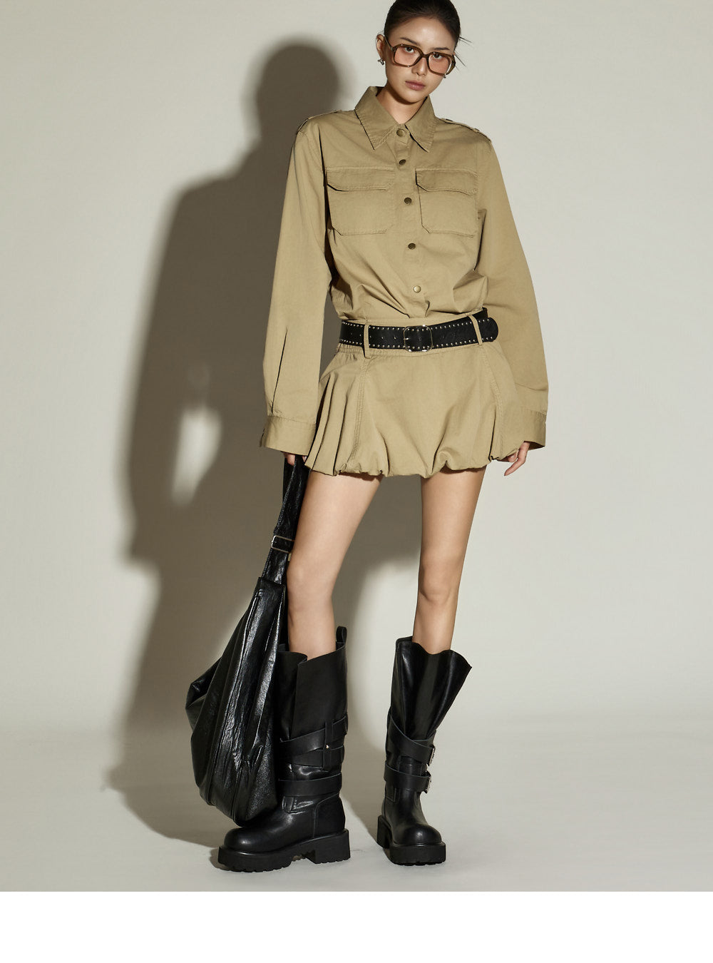 The bottom features a balloon-style miniskirt,