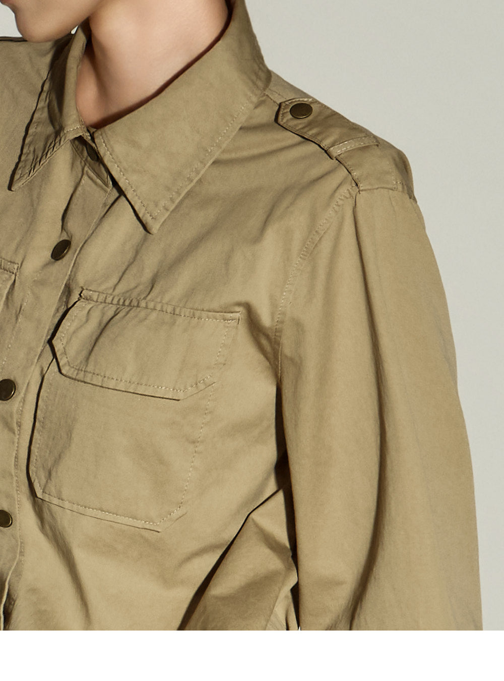 Two bust pockets add a casual touch,