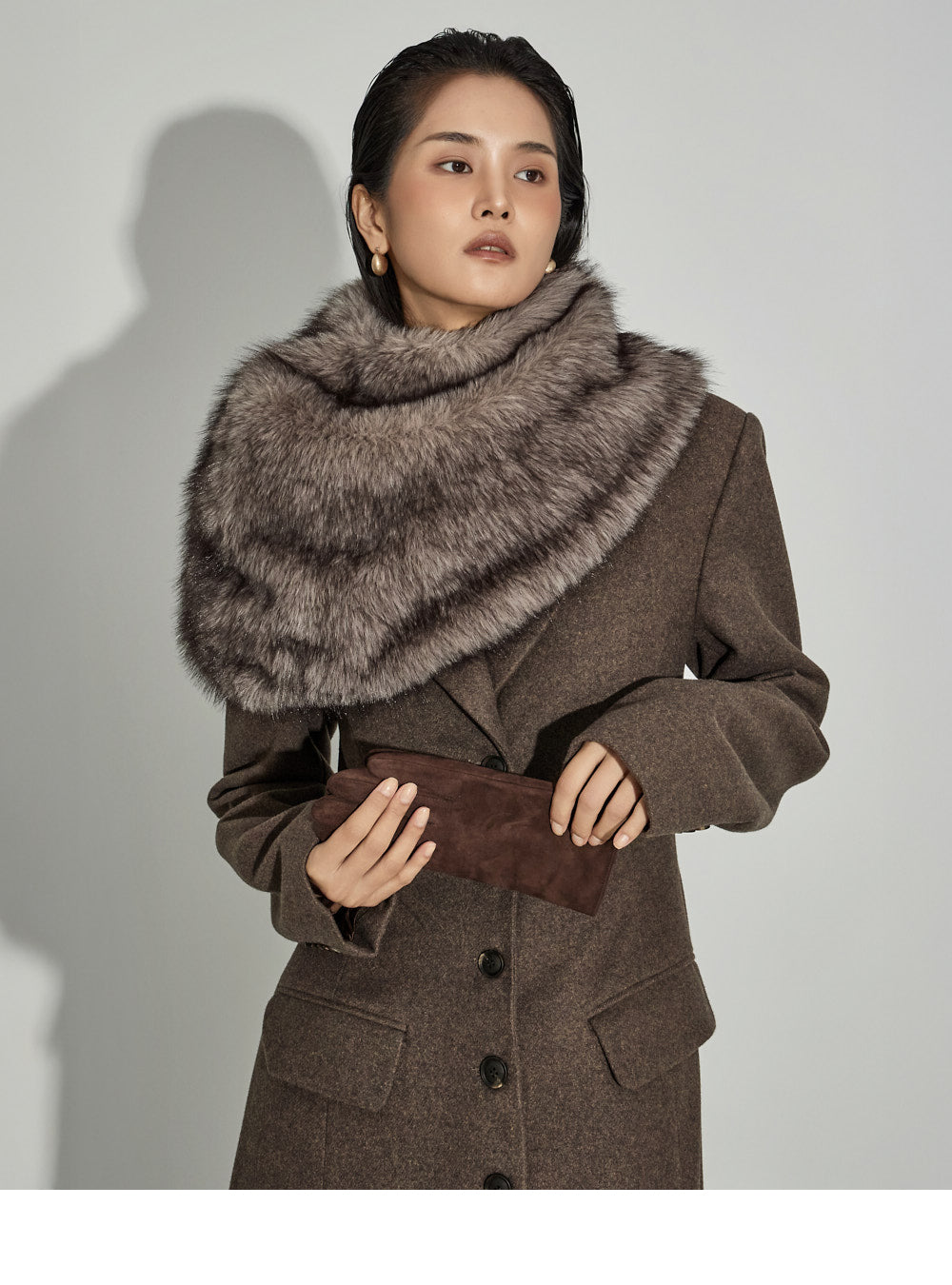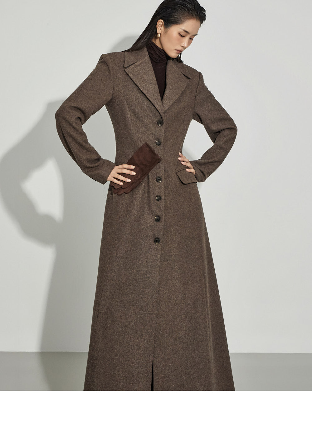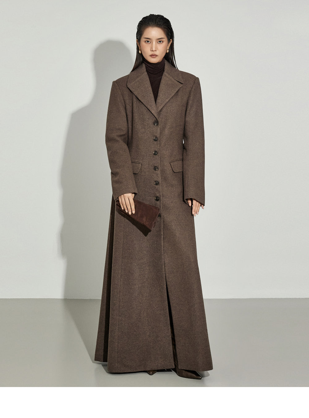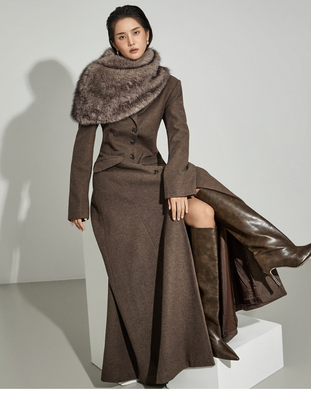 The 173cm model is wearing size ONE in DARK BROWN.