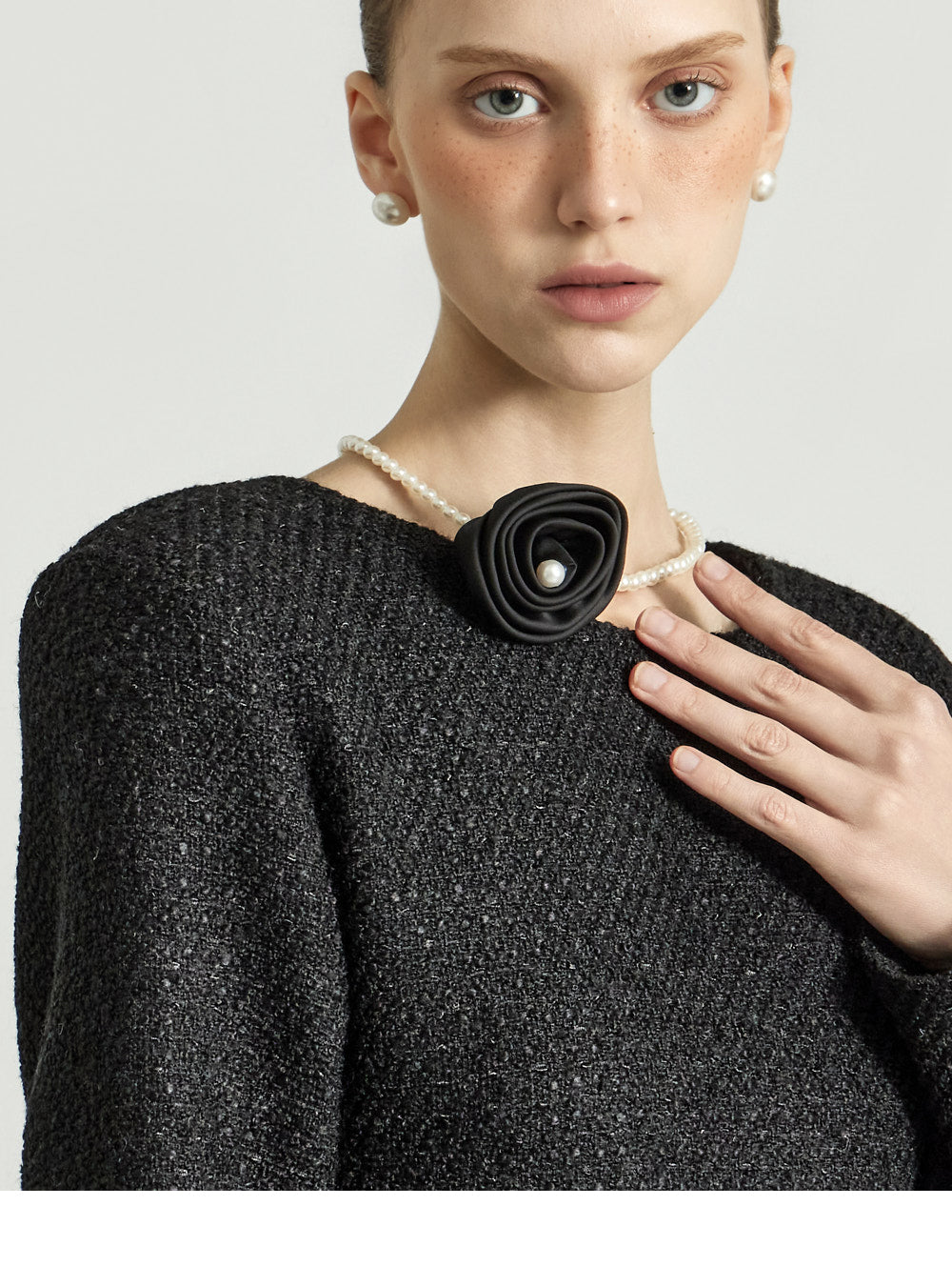 The pearl necklace and flower corsage set allow for a variety of styling possibilities,