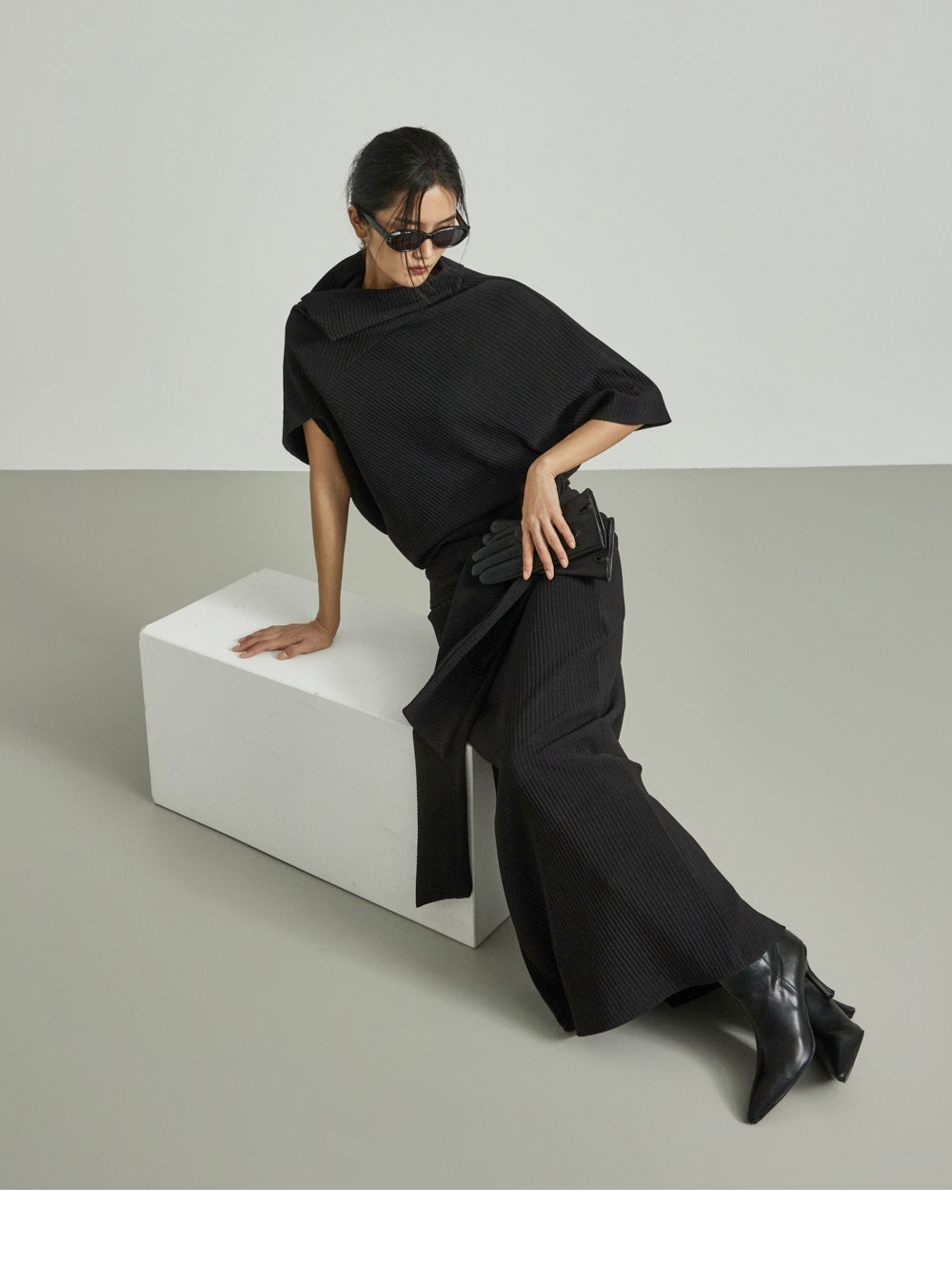 Model is 173cm tall and is wearing size ONE in BLACK.