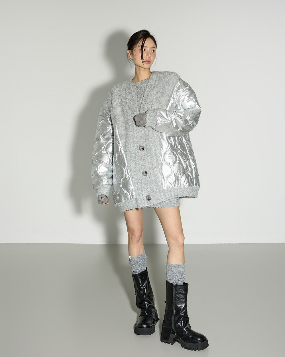 The model is 171cm tall and is wearing size ONE in GRAY.