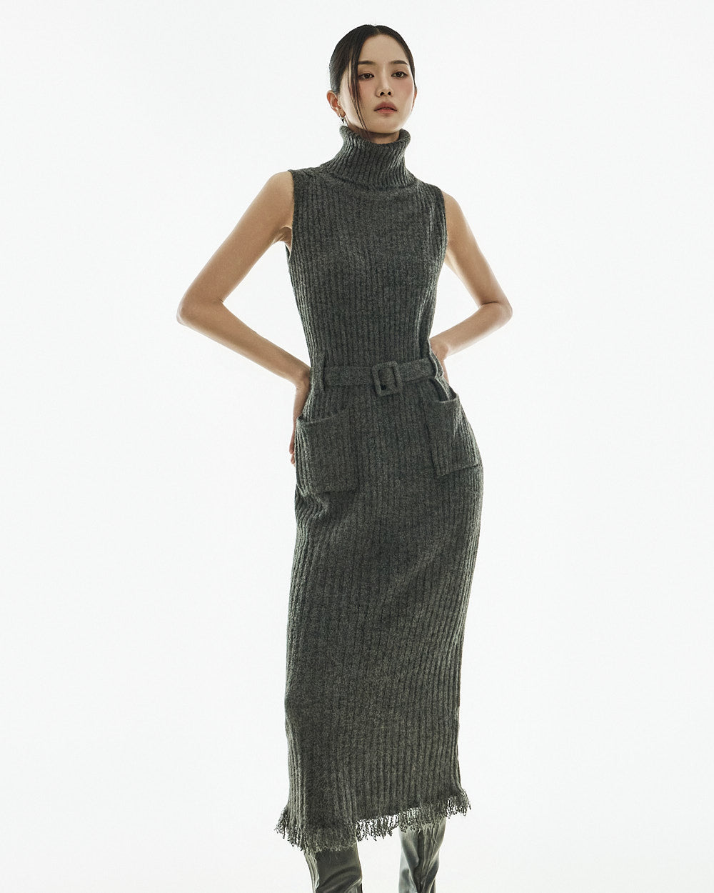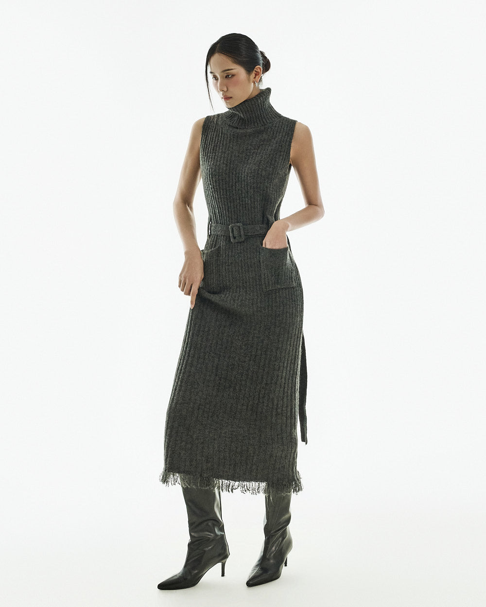 This knit dress exudes understated uniqueness.