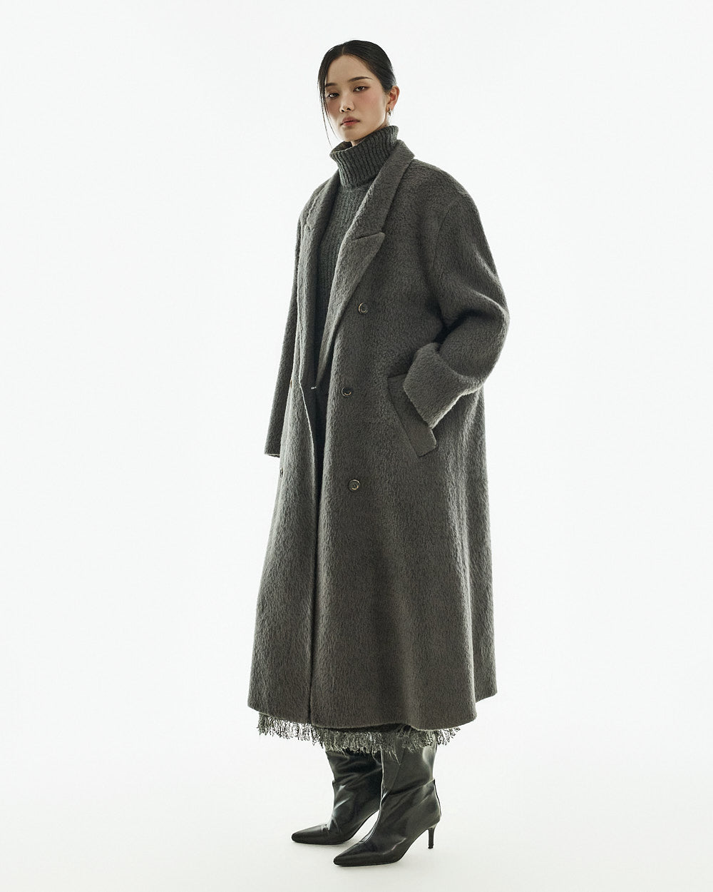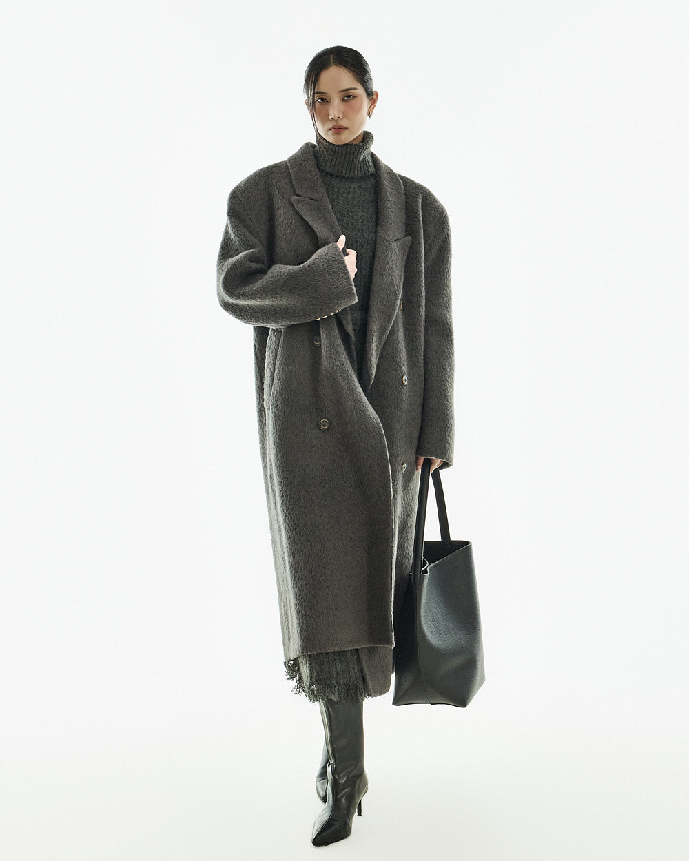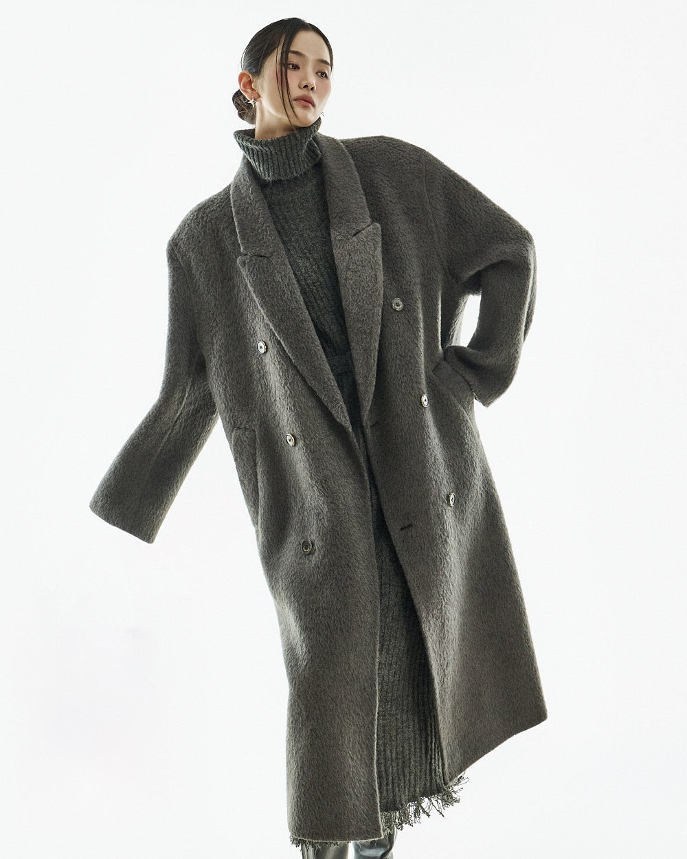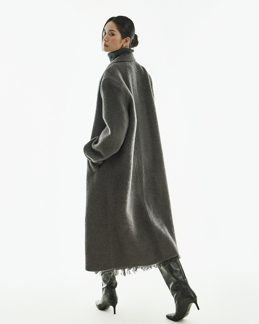 The 173cm model is wearing size one in the CHARCOAL color.
