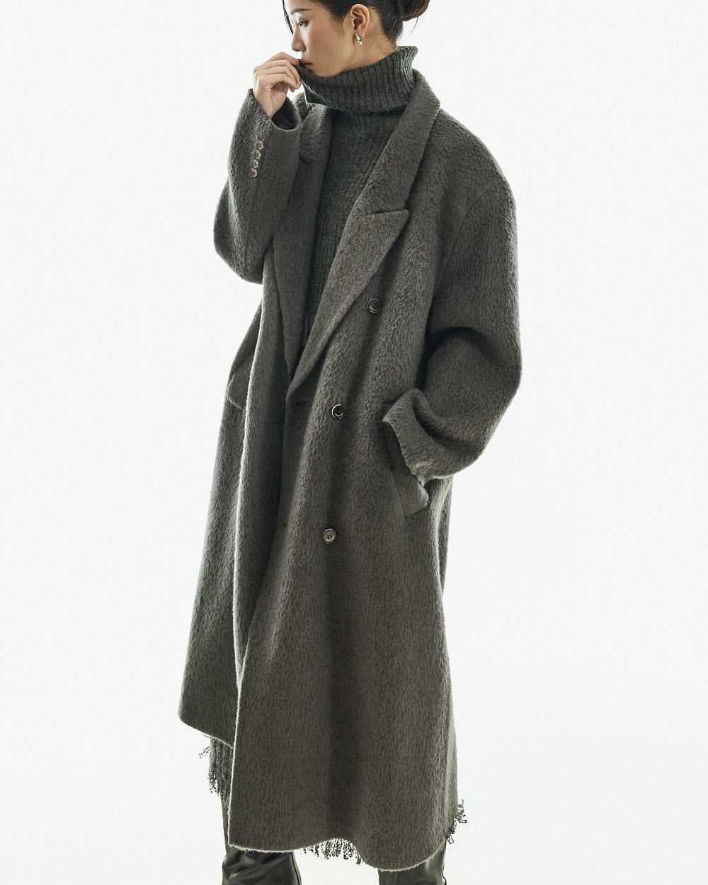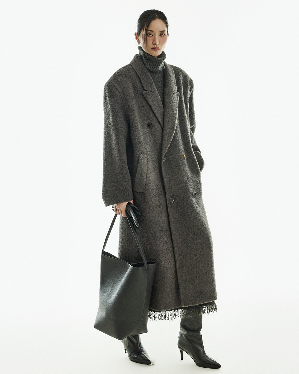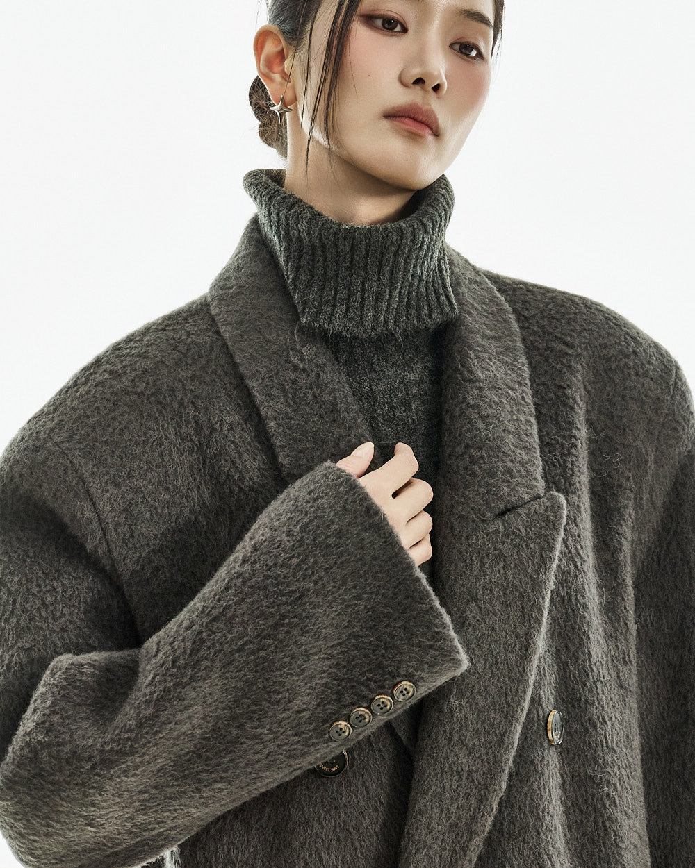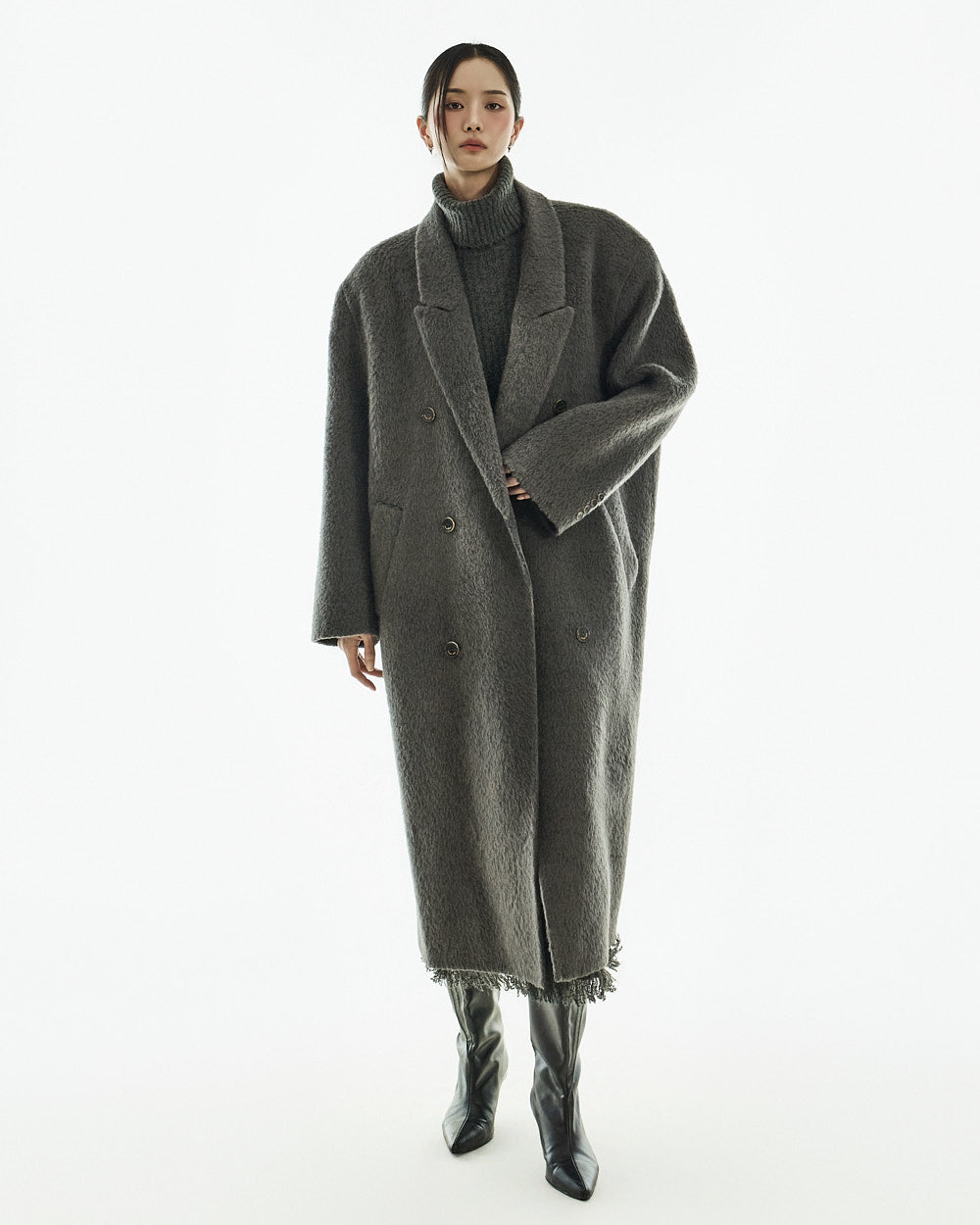 The 173cm model is wearing size one in the CHARCOAL color.