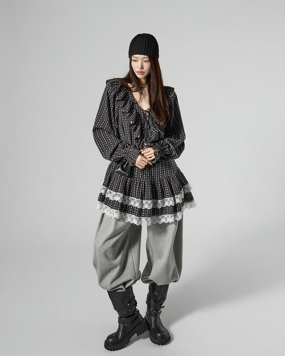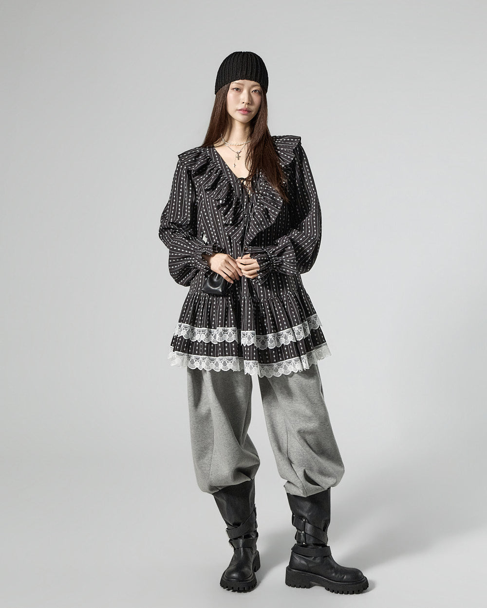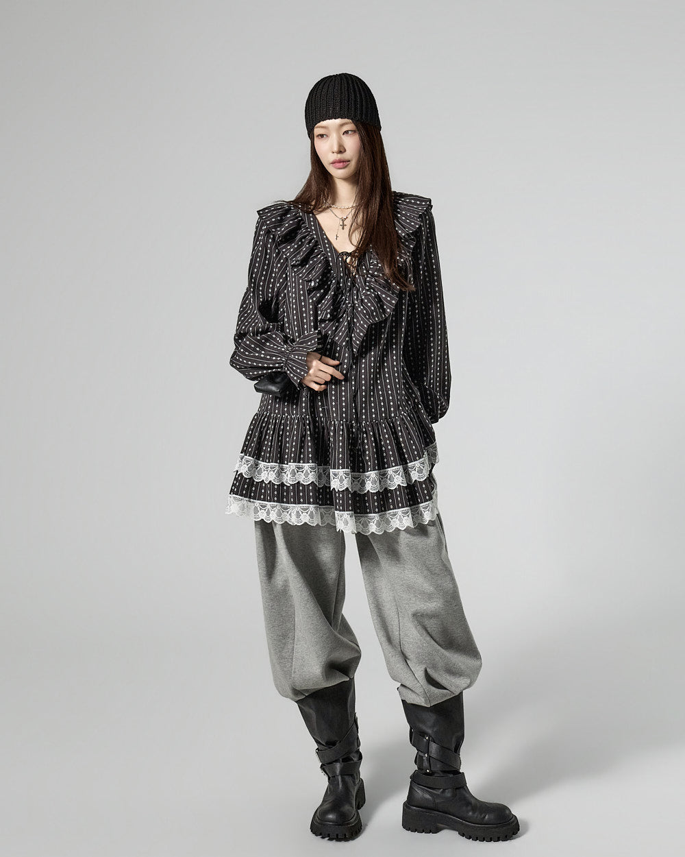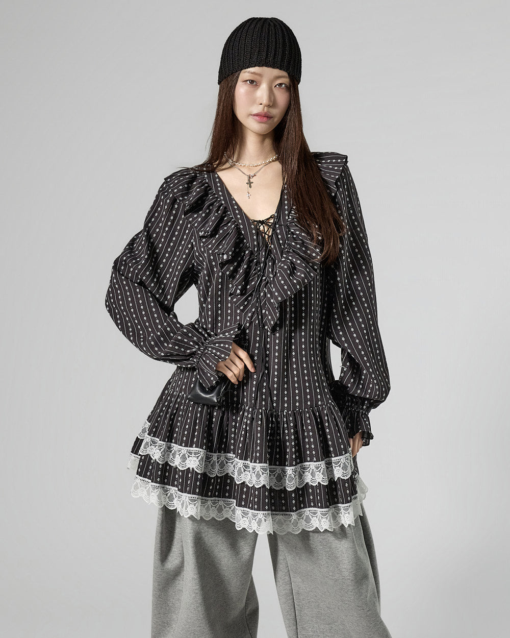 and the ruffled hem and banding details add a lovely touch.
