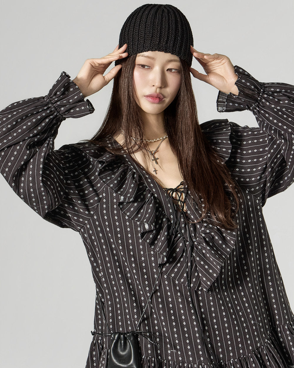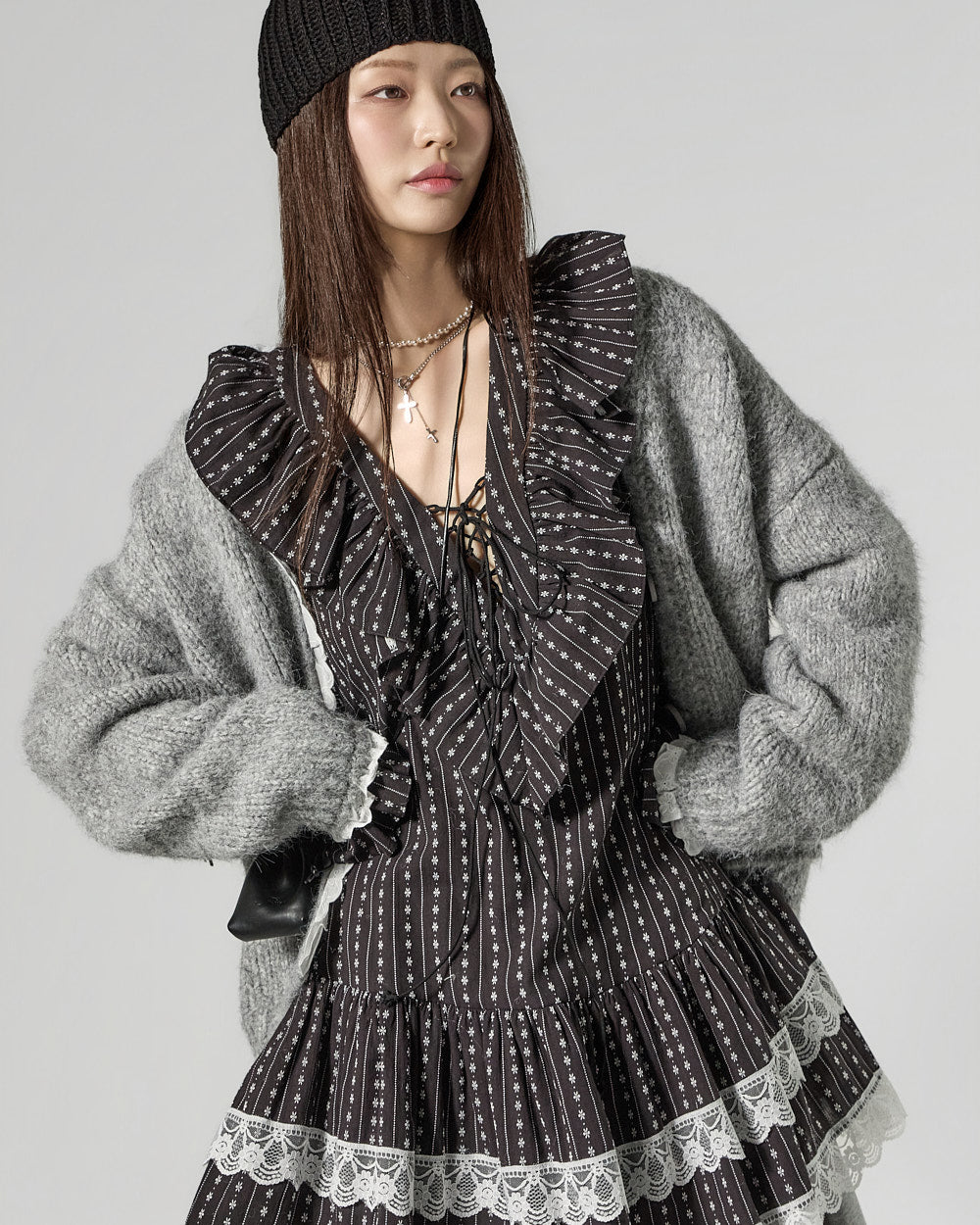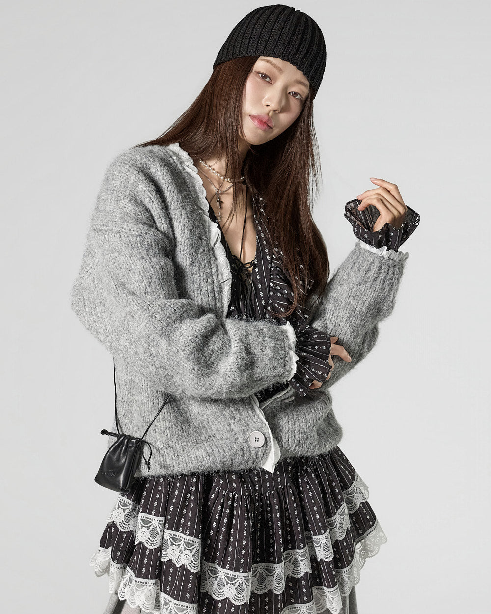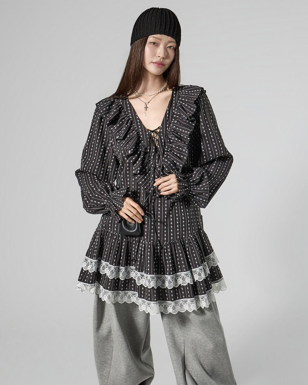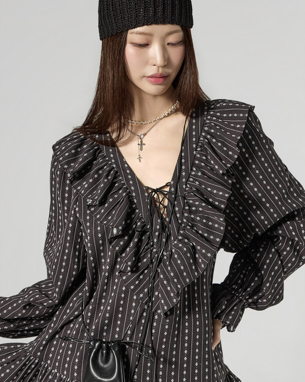 The mini length creates a playful mood.
