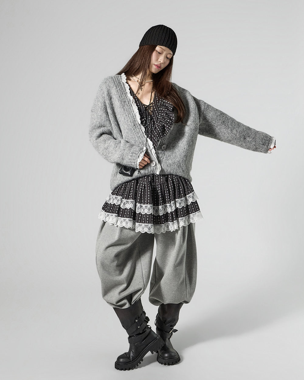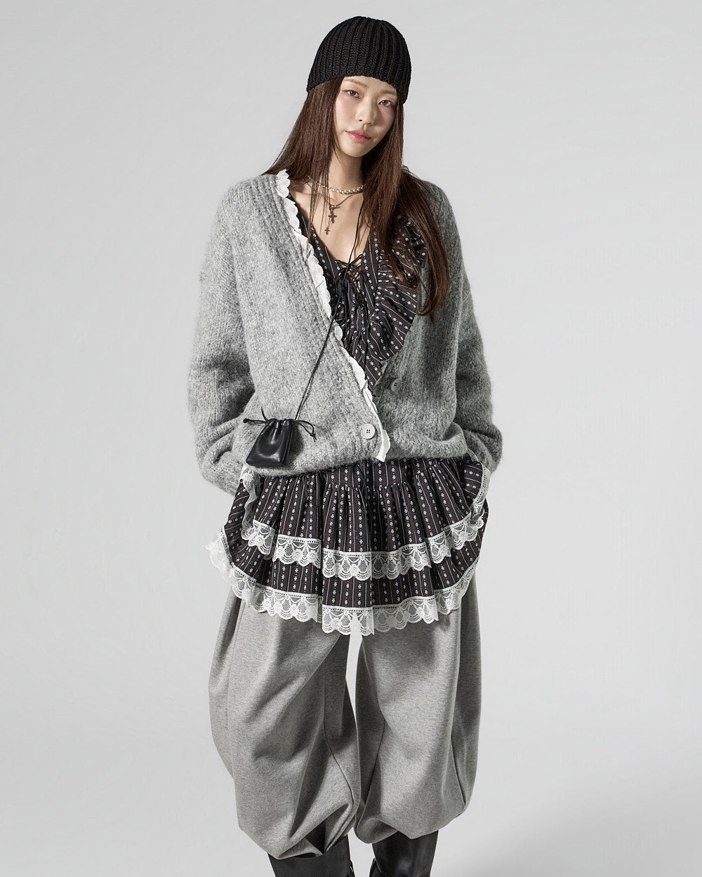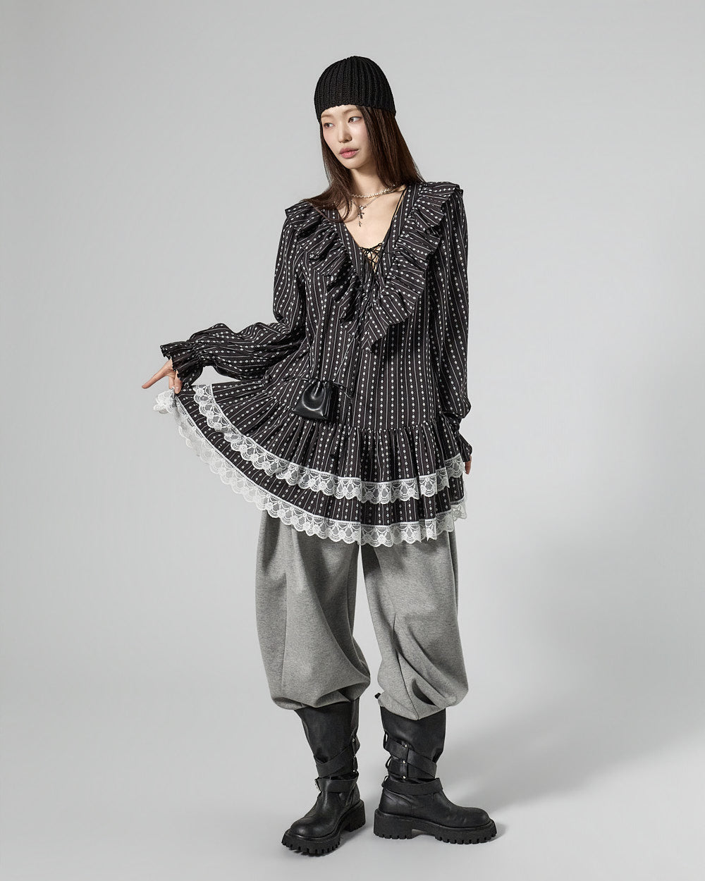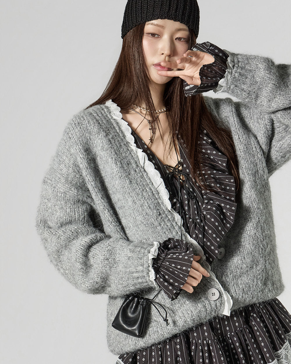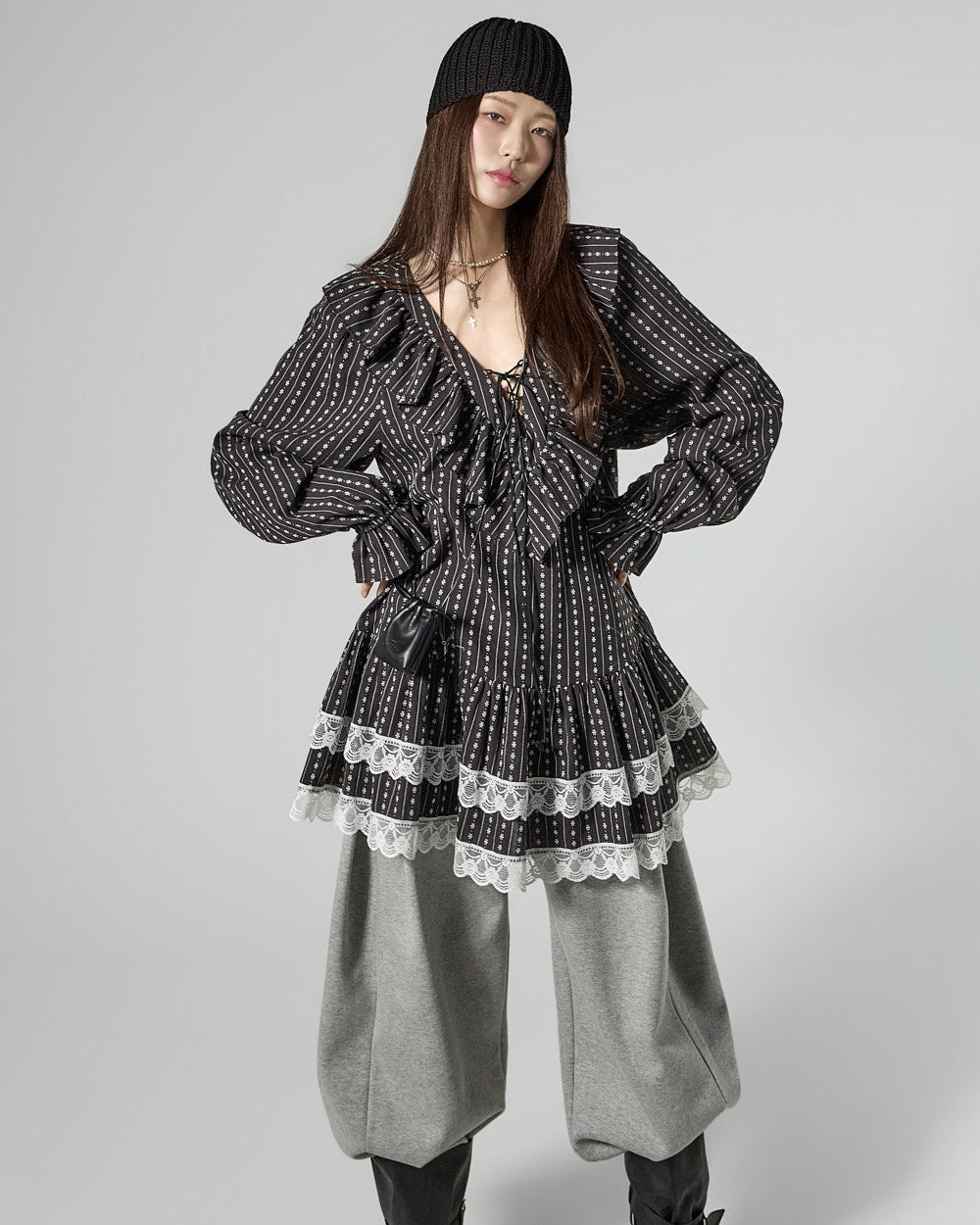 The mini length creates a playful mood.