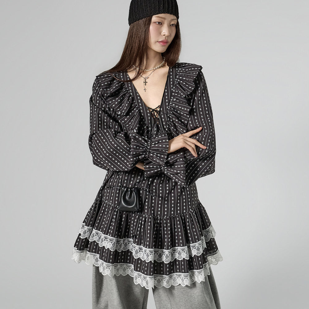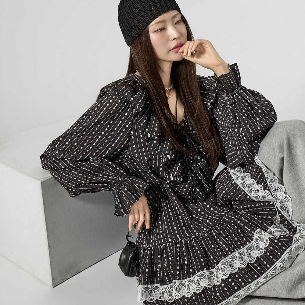 This ruffled lace dress has a casual vibe.