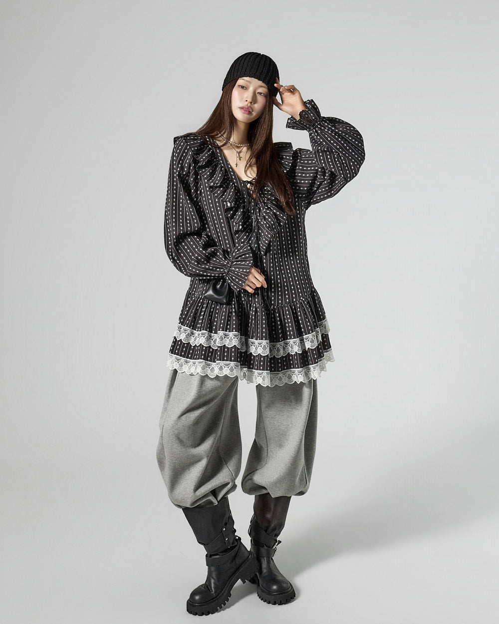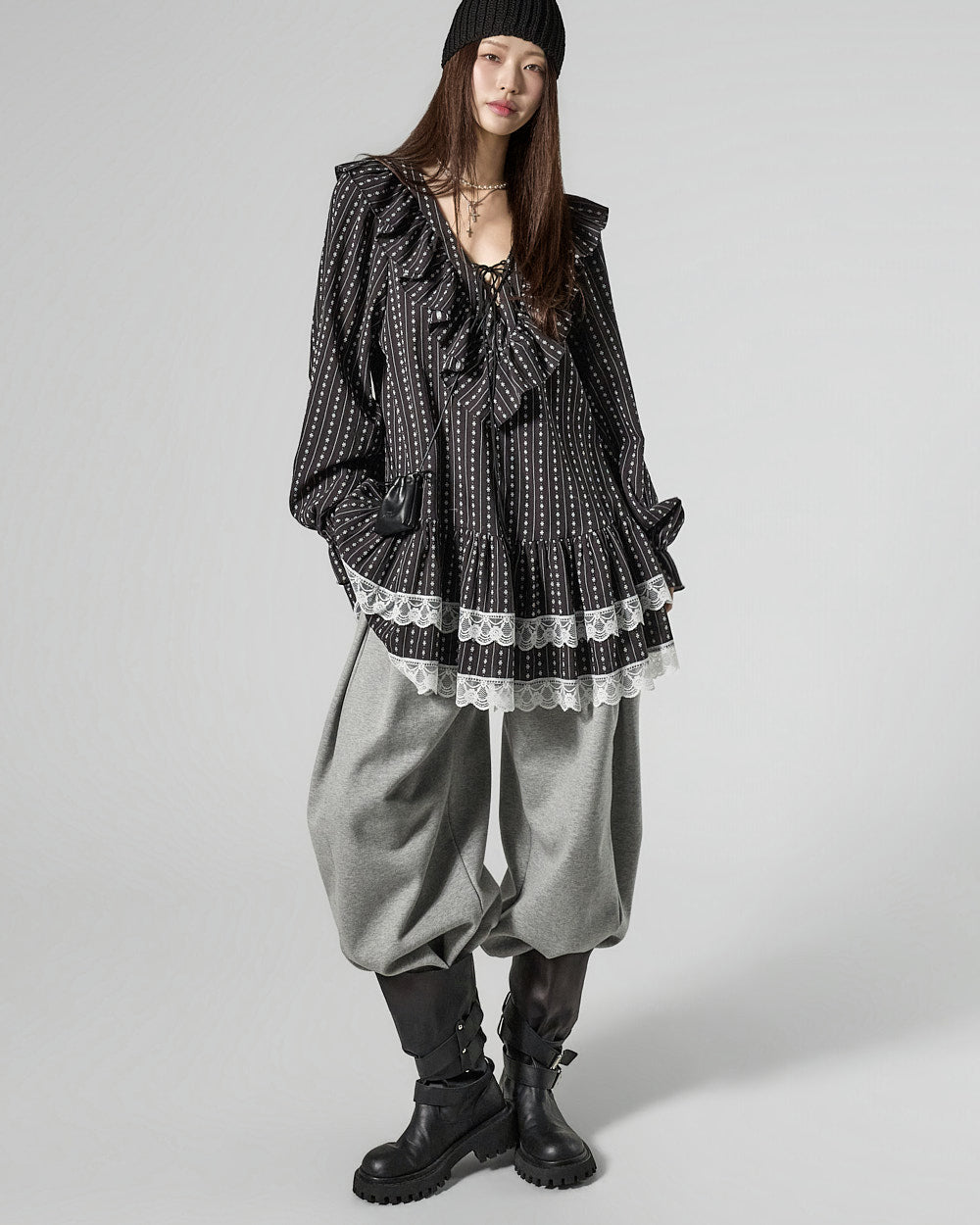 The 171cm model is wearing size ONE in BLACK.