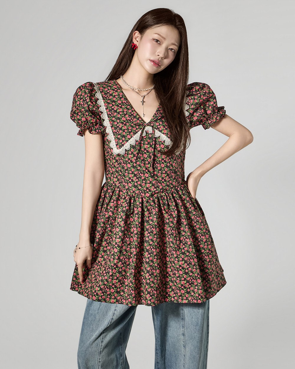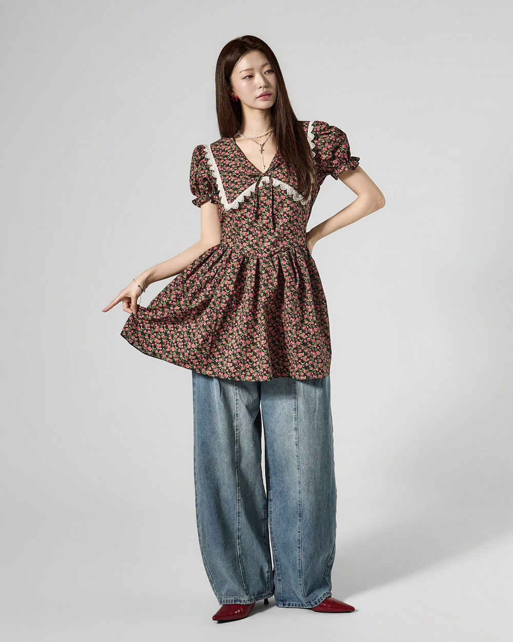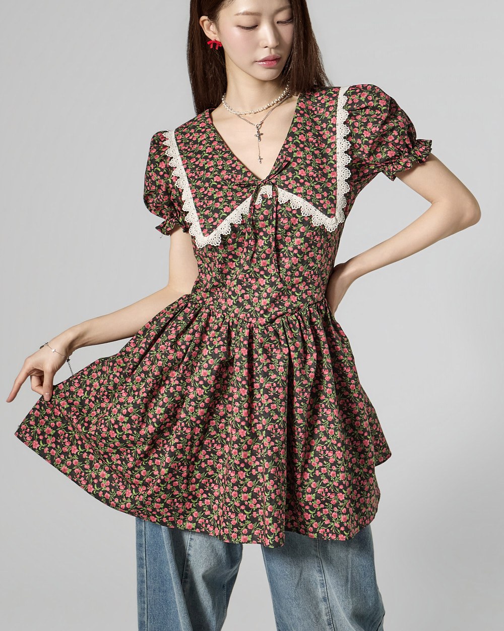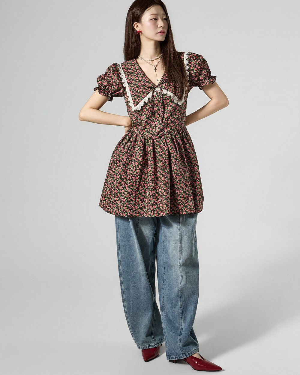 while the puff sleeves add a lovely silhouette.