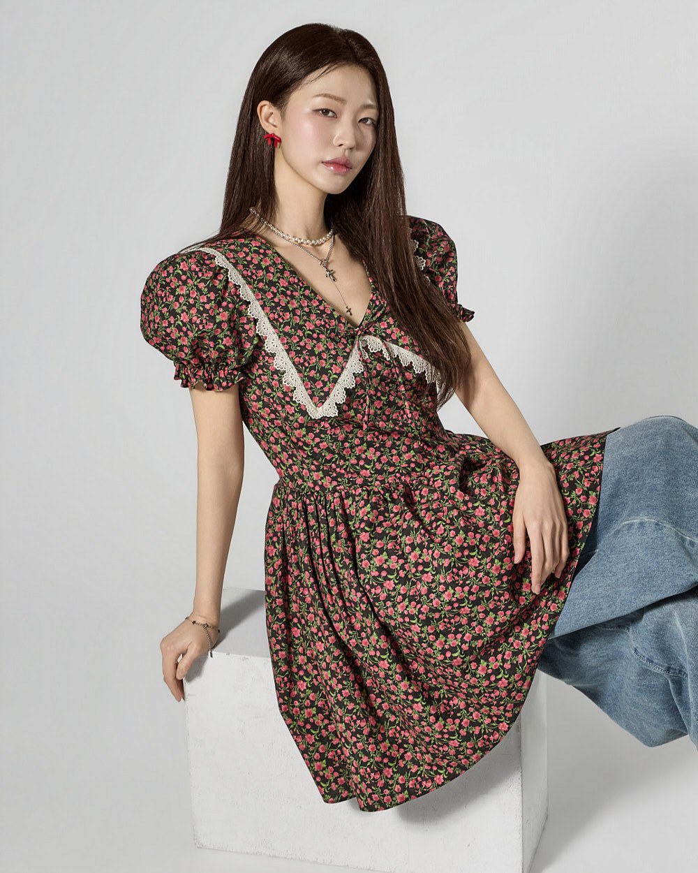 This lovely floral one-piece dress.
