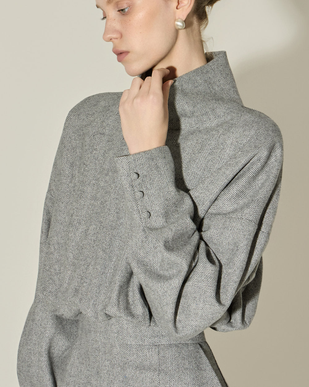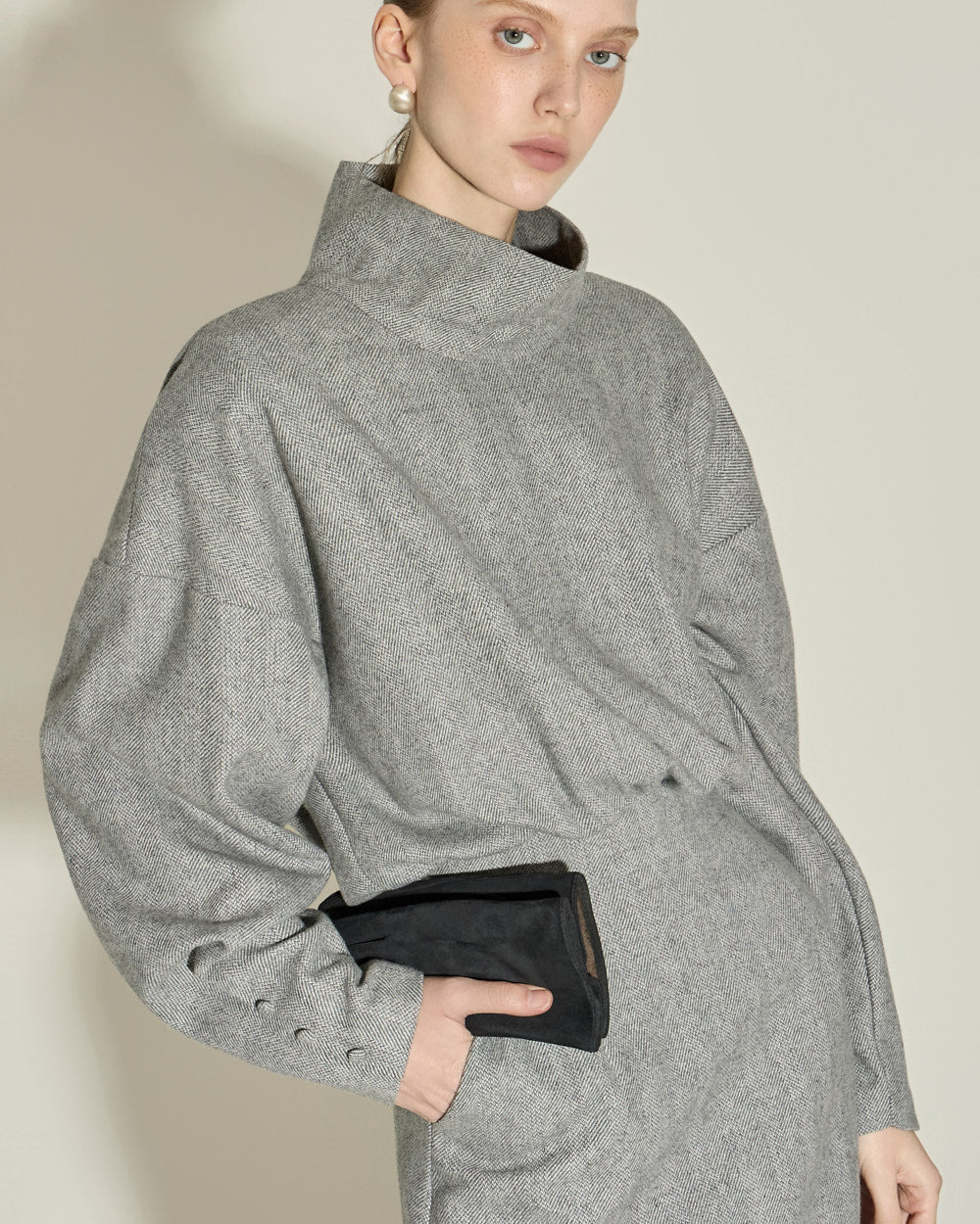 The loose fit and relaxed high neck detail