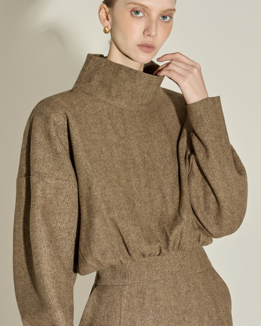 The loose fit and relaxed high neck detail