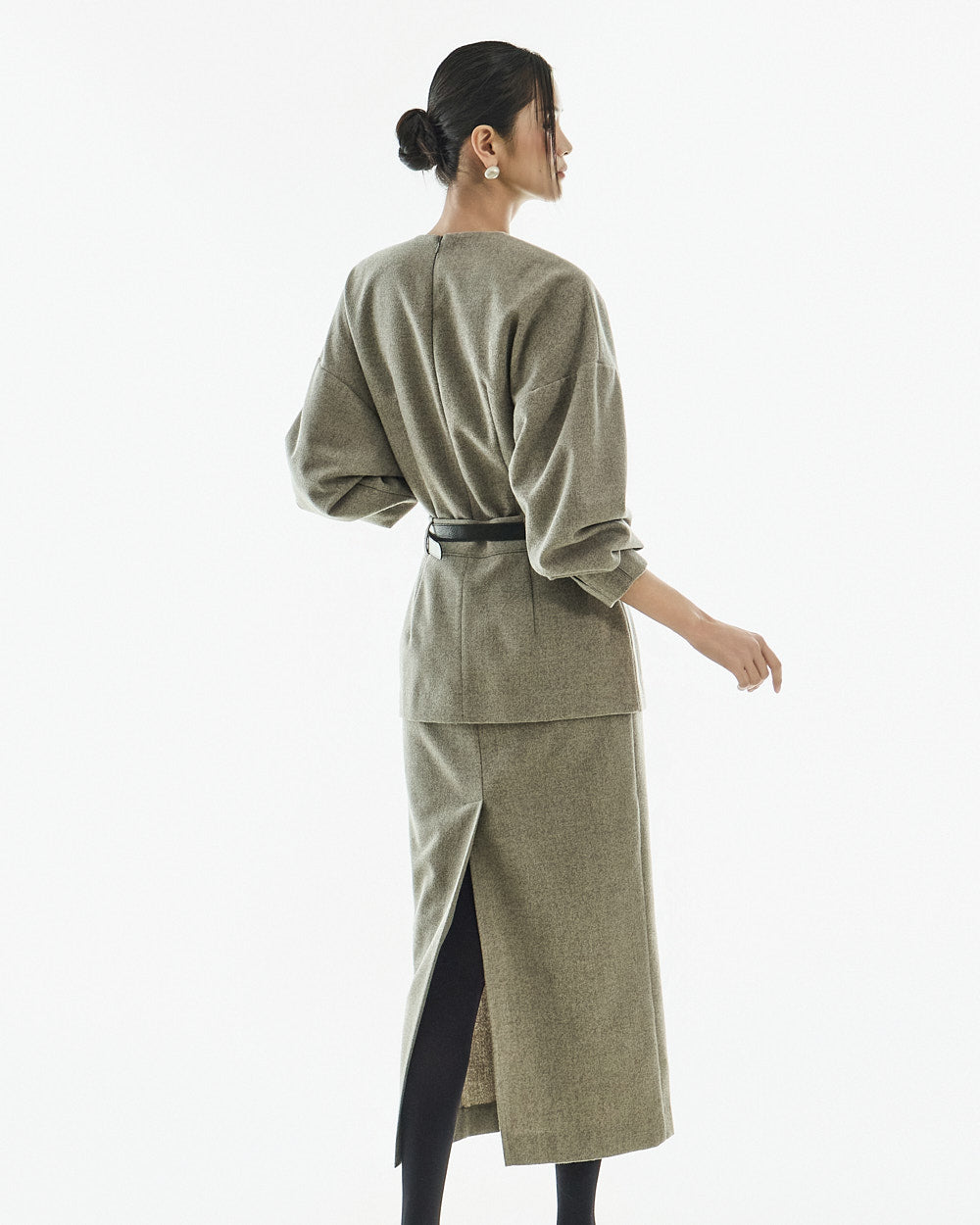 This modern-style belt set layered dress.