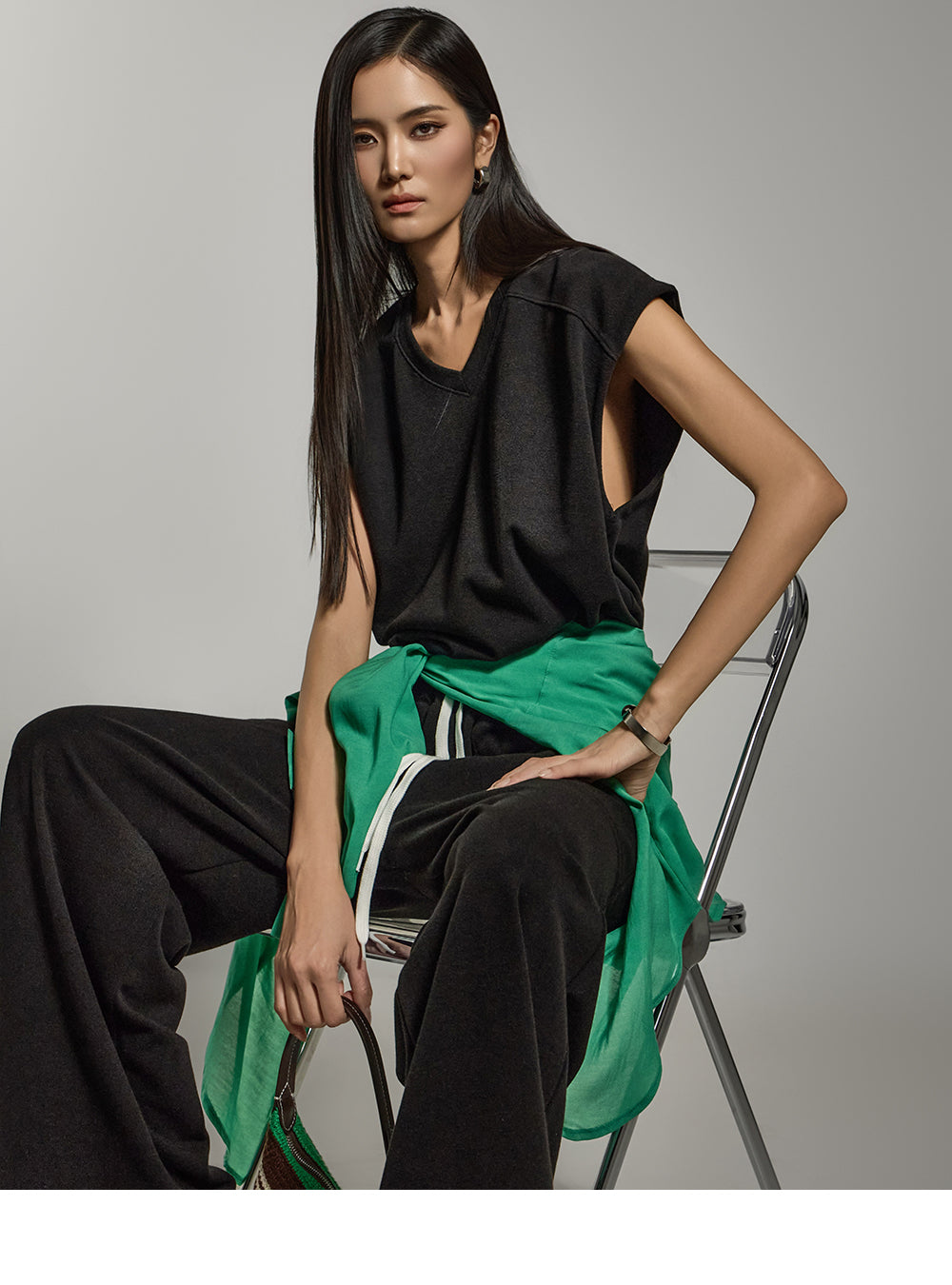Denim (jeans, coated jeans) and other dark-dyed garments may experience color fading or transfer. Please take extra care before the first wash and while wearing them.