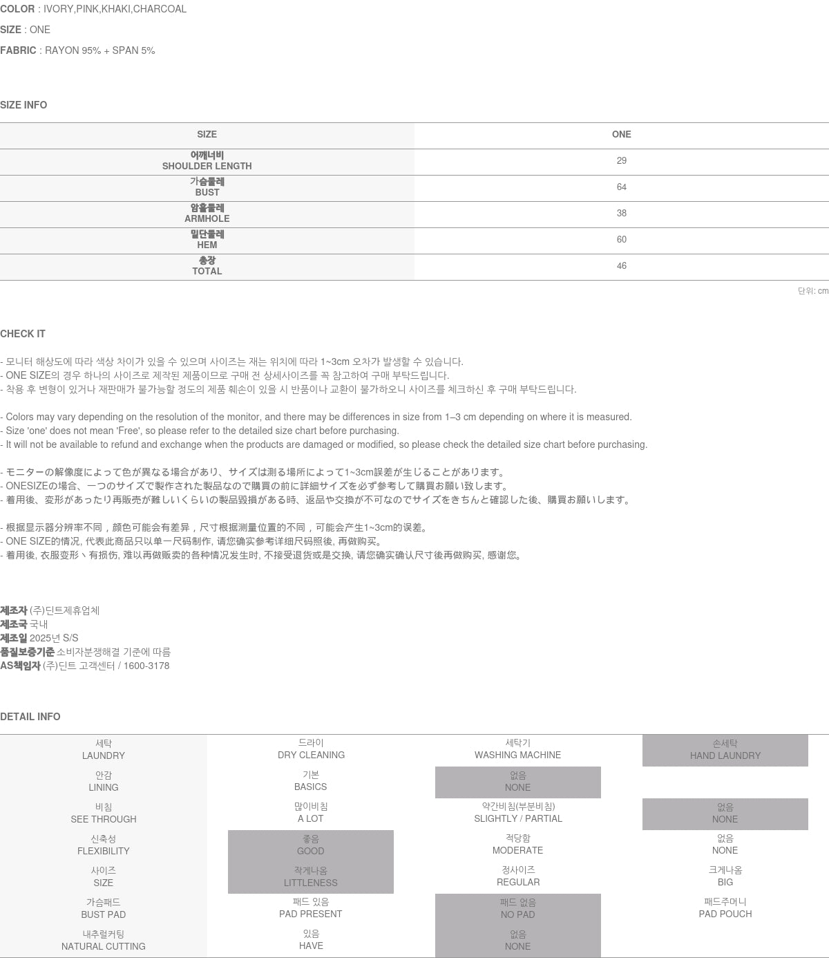 Clothing from DINT Co., Ltd. may become damaged or deformed if machine washed or tumble dried. We strongly recommend following the care instructions provided below.