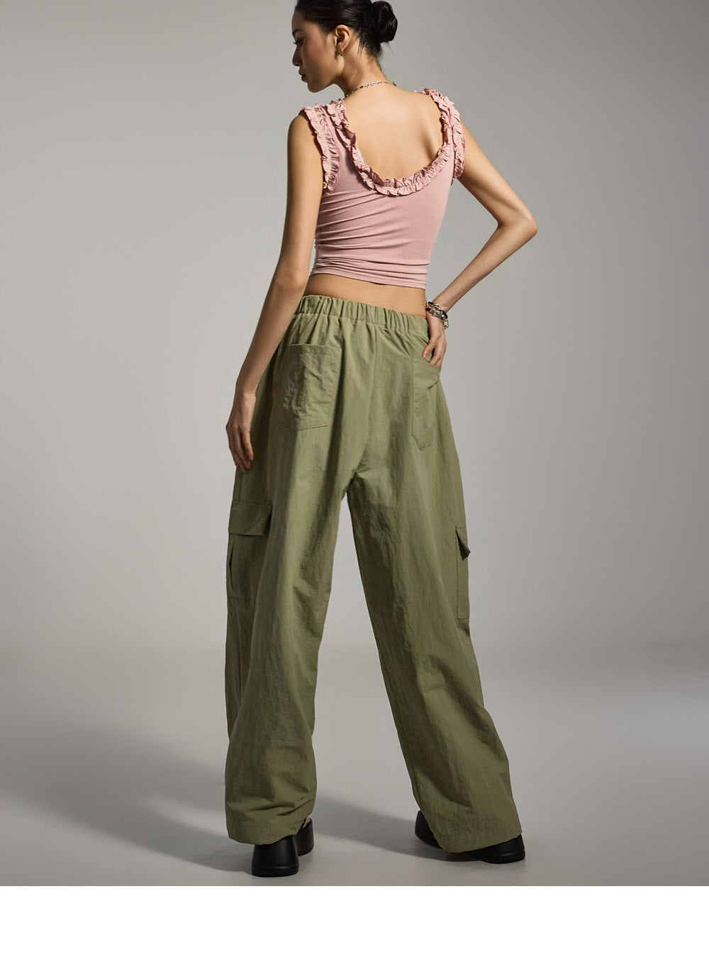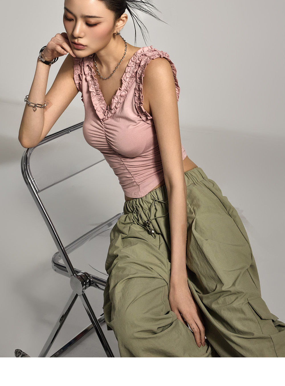 This frill sleeveless top offers a casual vibe.