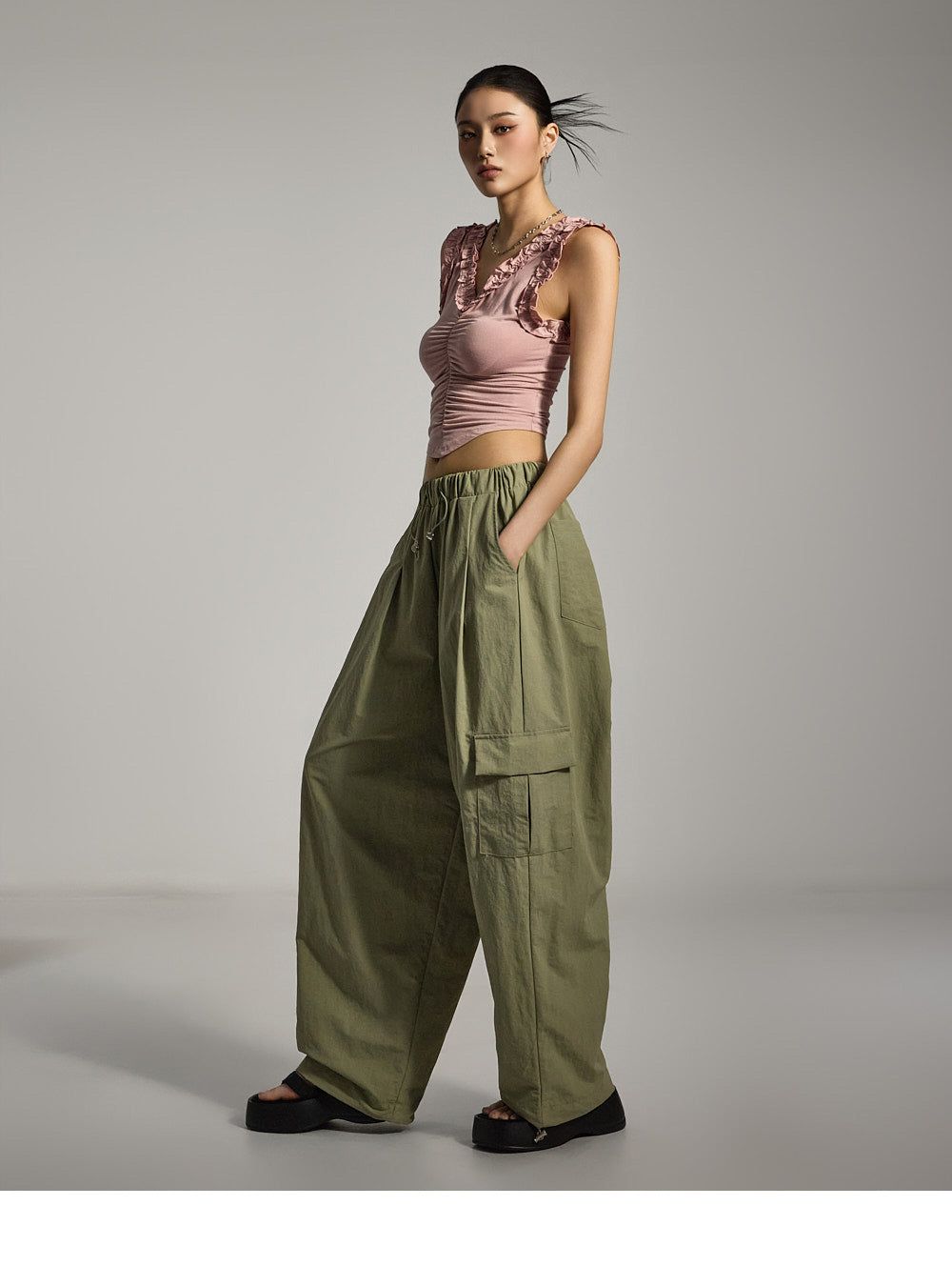 Front shirring adds natural volume,