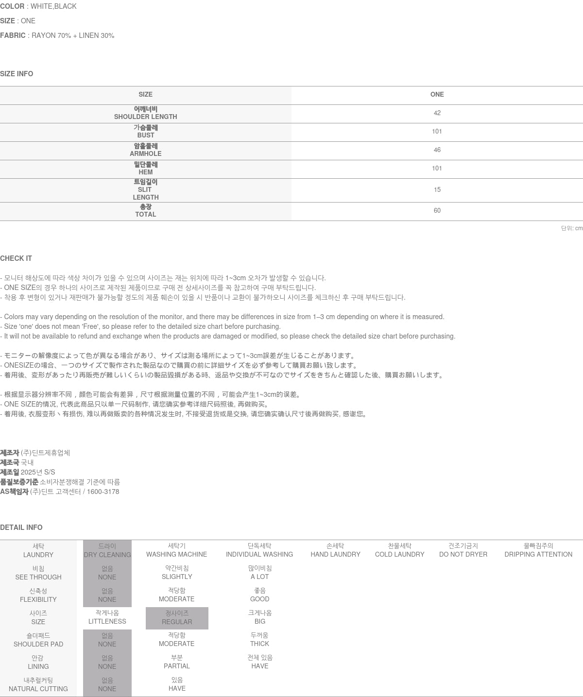 Clothing from DINT Co., Ltd. may become damaged or deformed if machine washed or tumble dried. We strongly recommend following the care instructions provided below.
