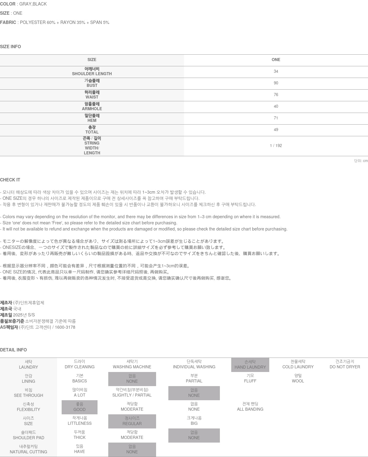 Clothing from DINT Co., Ltd. may become damaged or deformed if machine washed or tumble dried. We strongly recommend following the care instructions provided below.