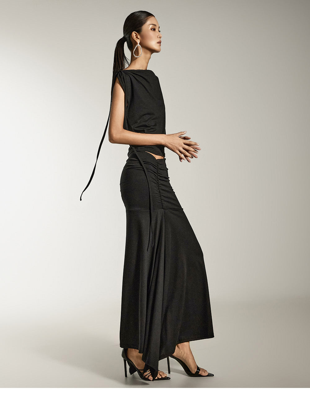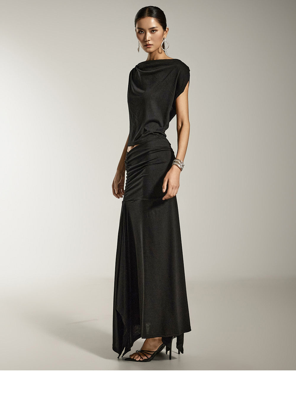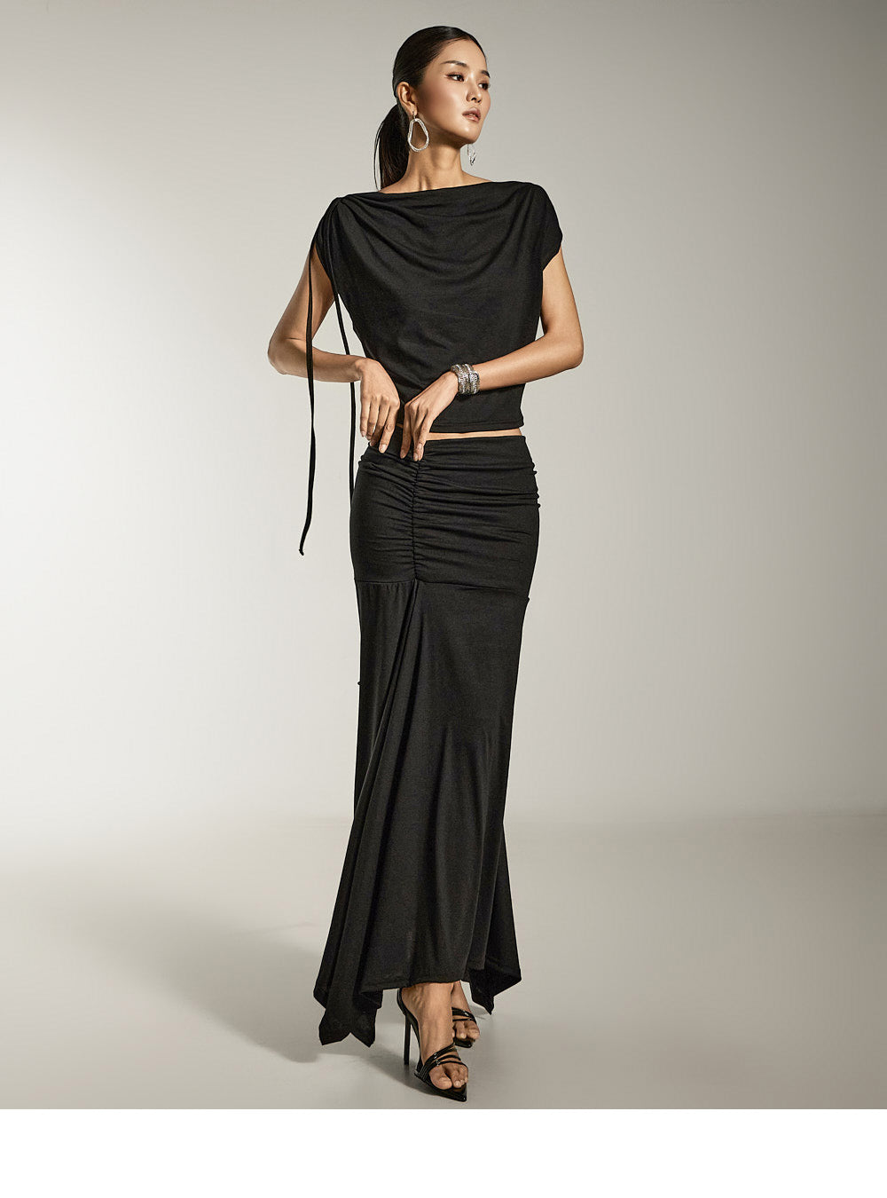 This is a draped top with a sophisticated mood.