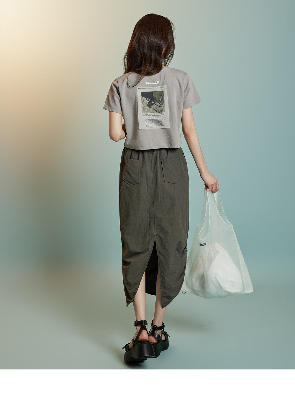 while the semi-sheer photo print on the back
