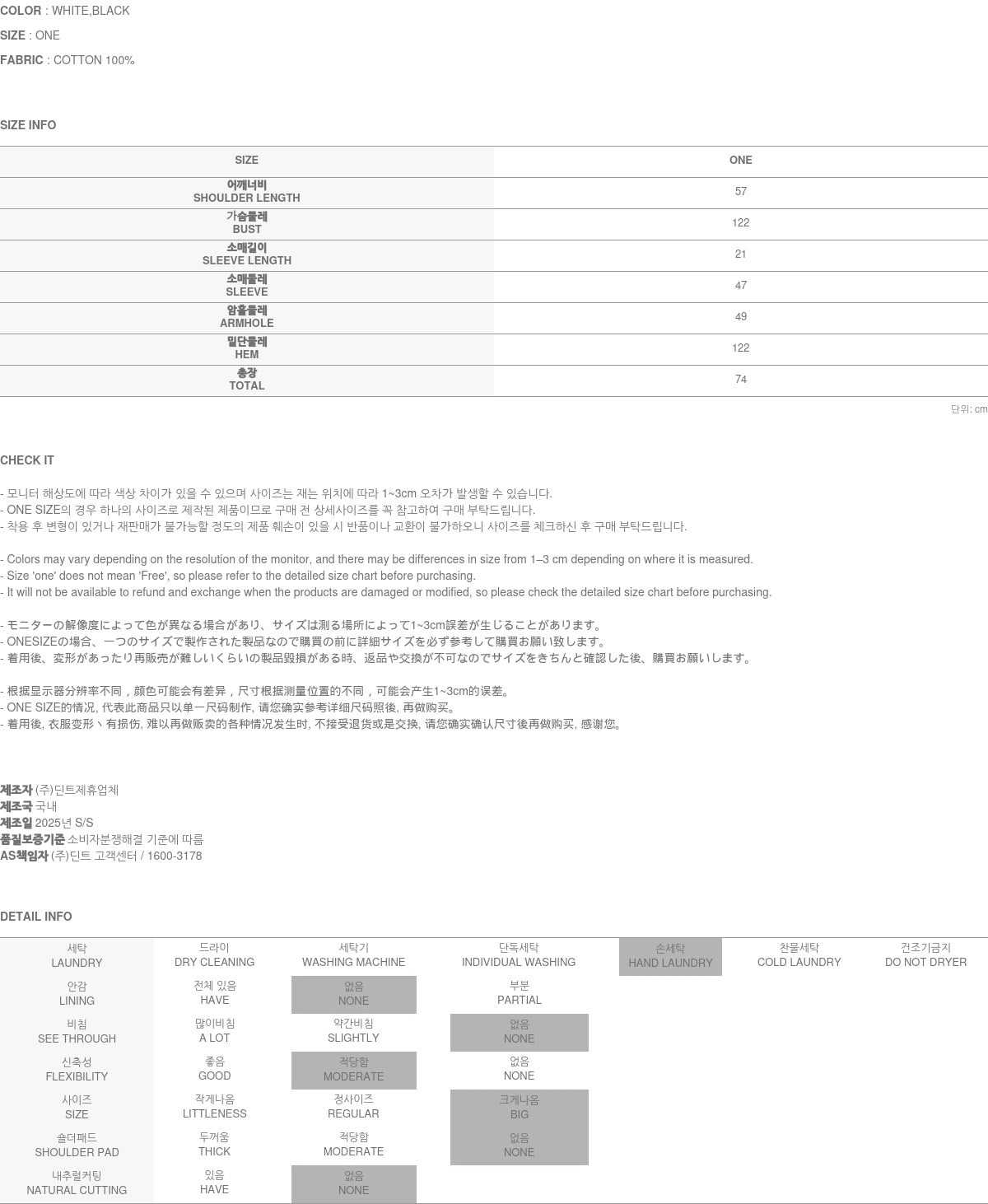 Clothing from DINT Co., Ltd. may become damaged or deformed if machine washed or tumble dried. We strongly recommend following the care instructions provided below.