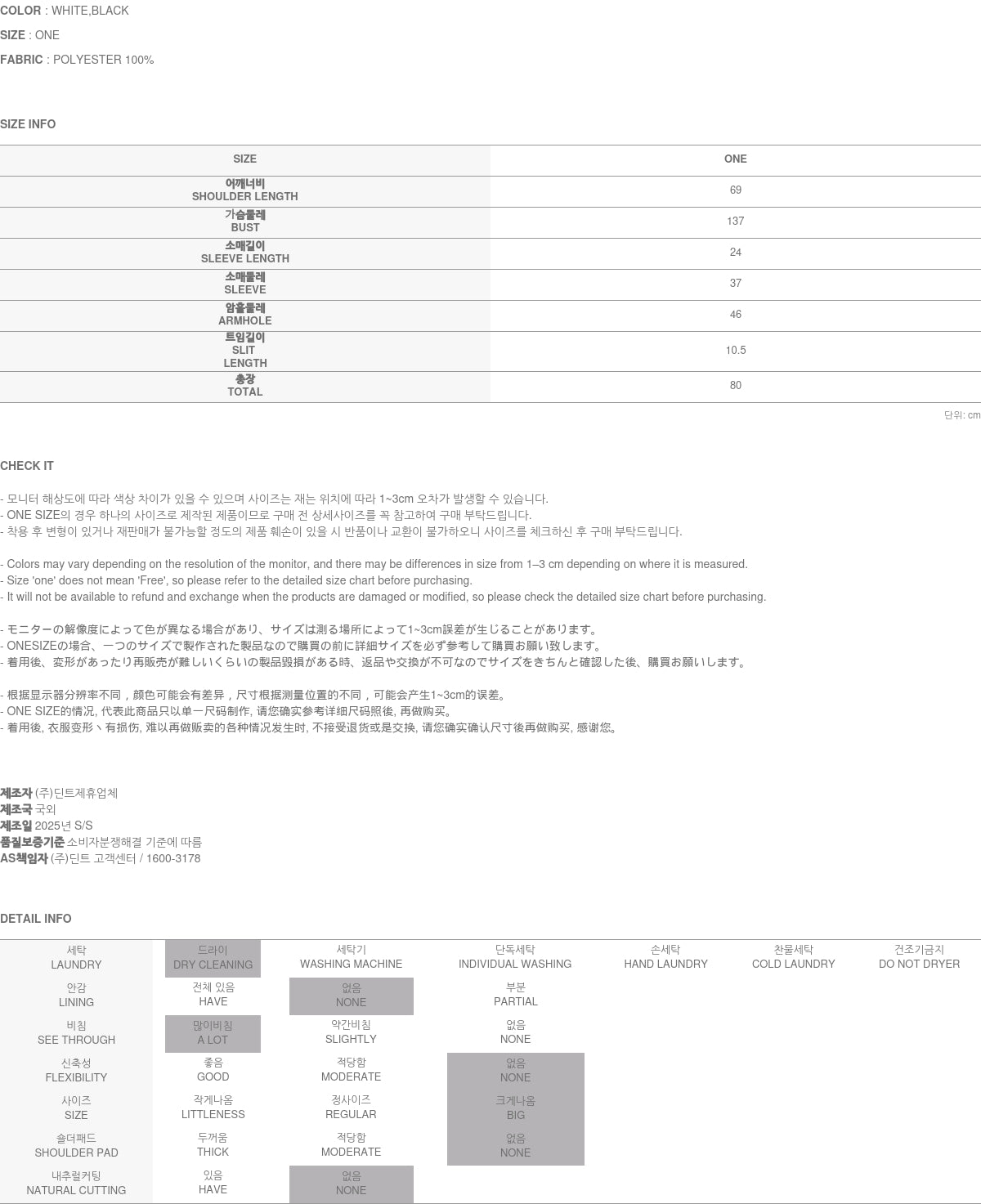 Clothing from DINT Co., Ltd. may become damaged or deformed if machine washed or tumble dried. We strongly recommend following the care instructions provided below.
