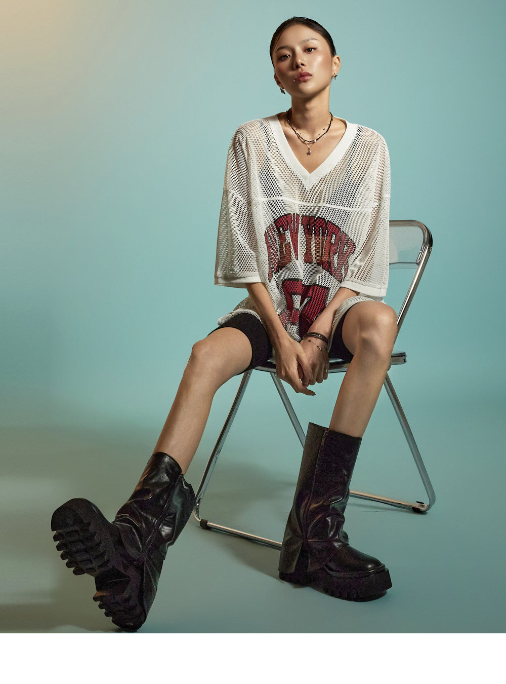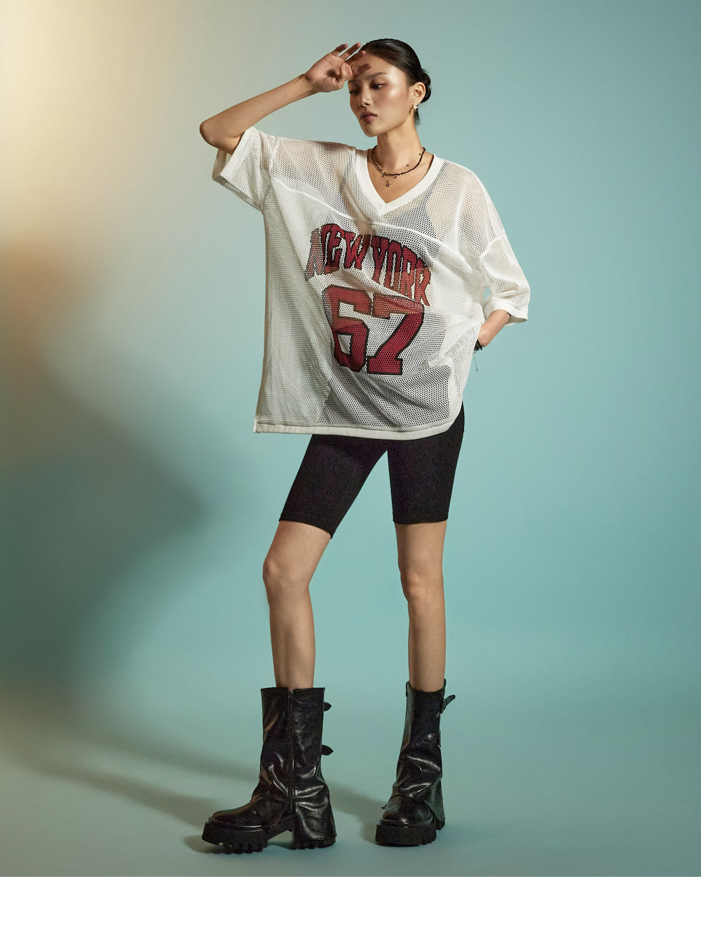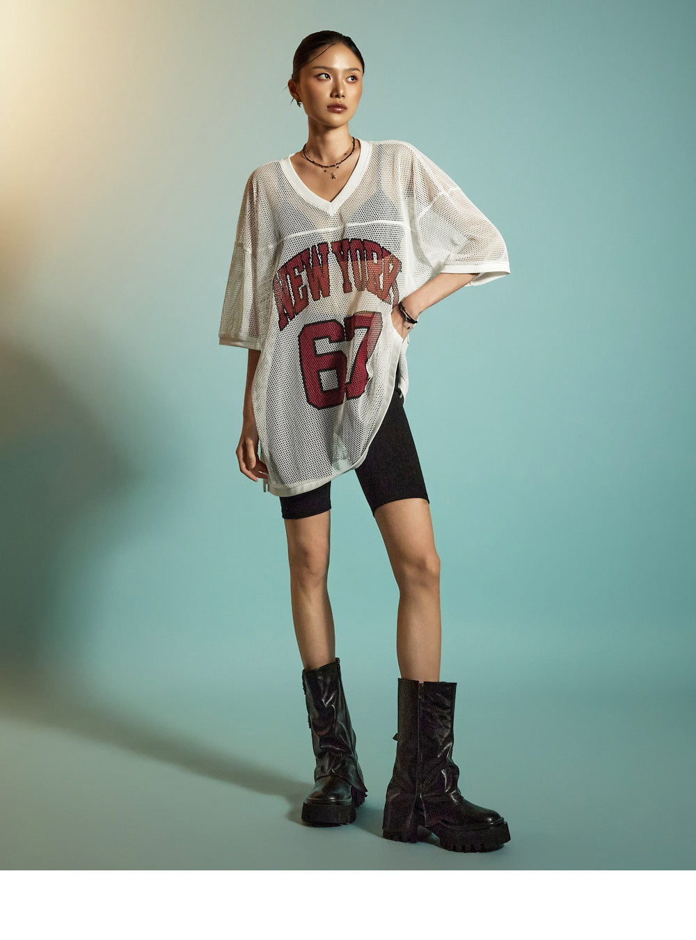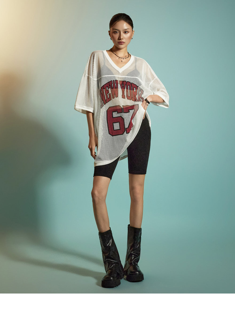 This is a casual mesh lettering top designed for everyday wear.