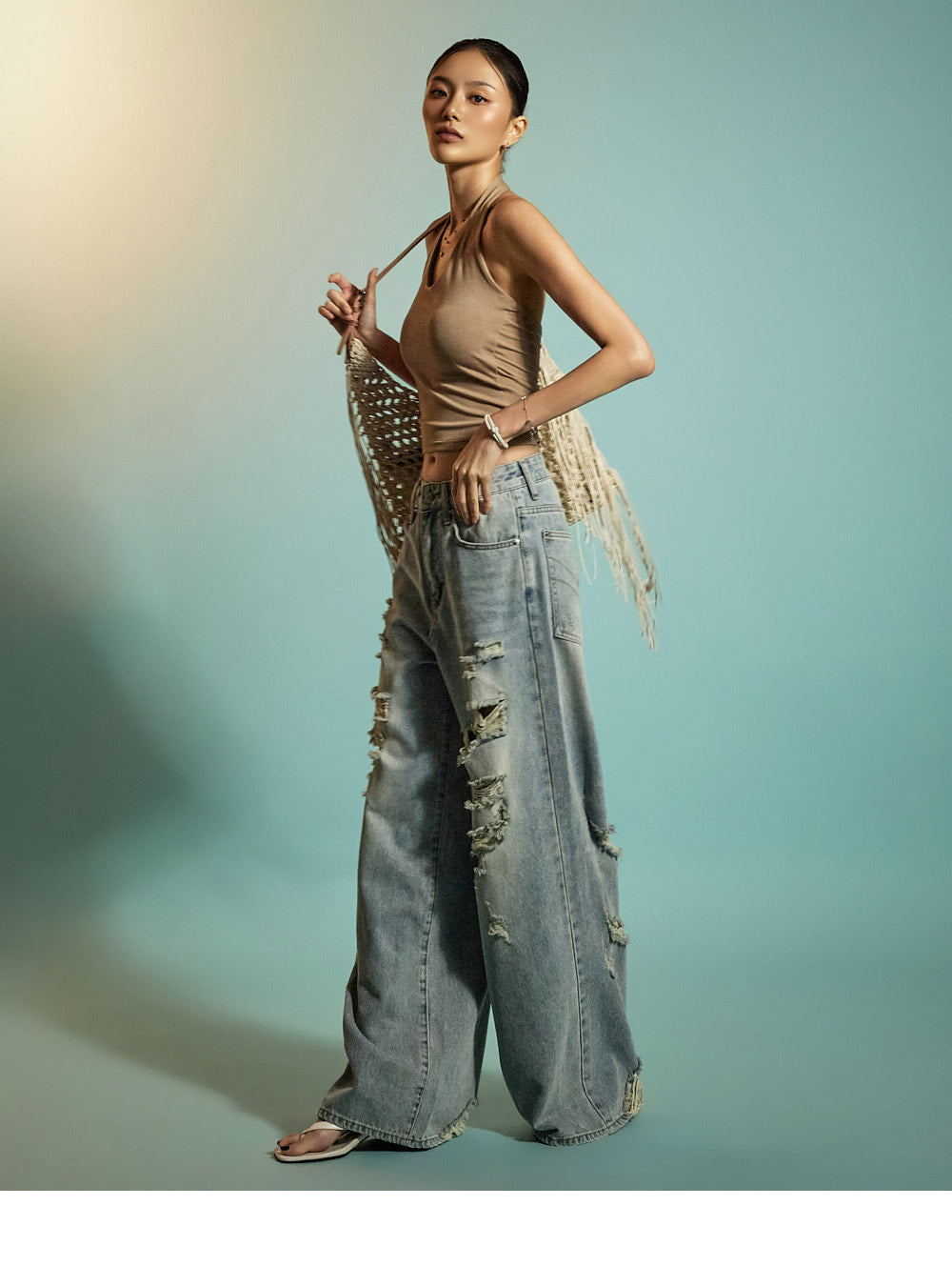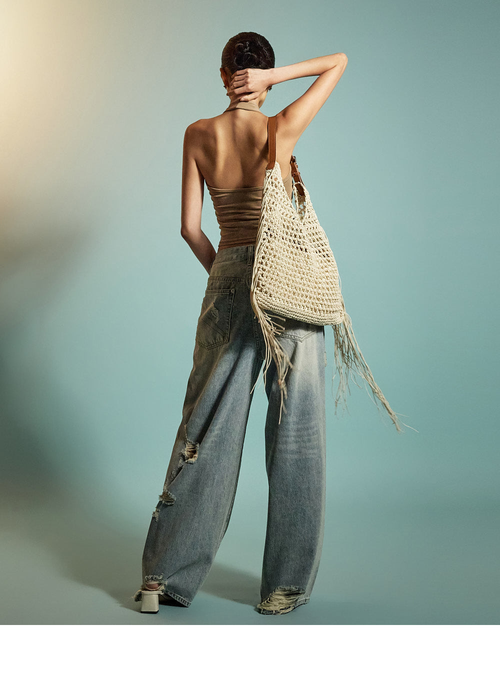 Denim (jeans, coated jeans) and other dark-dyed garments may experience color fading or transfer. Please take extra care before the first wash and while wearing them.