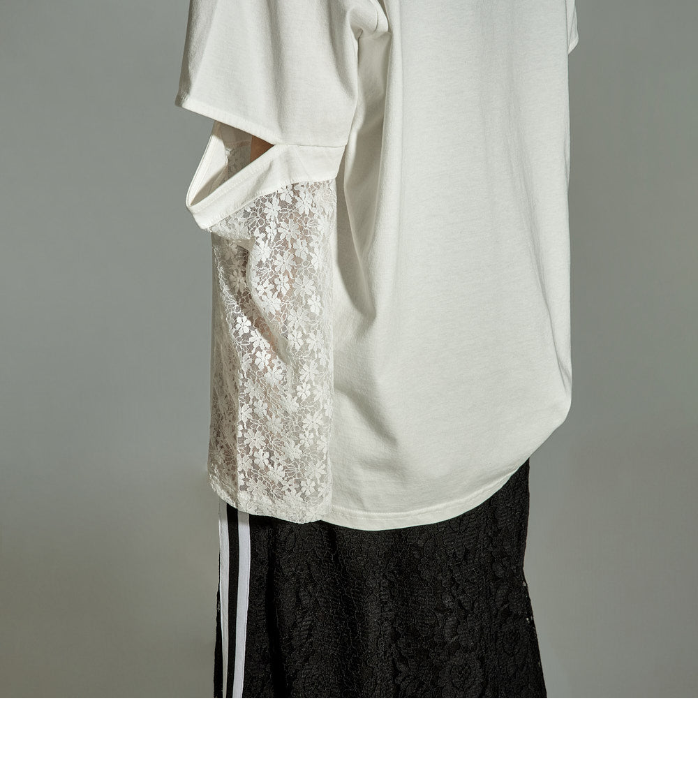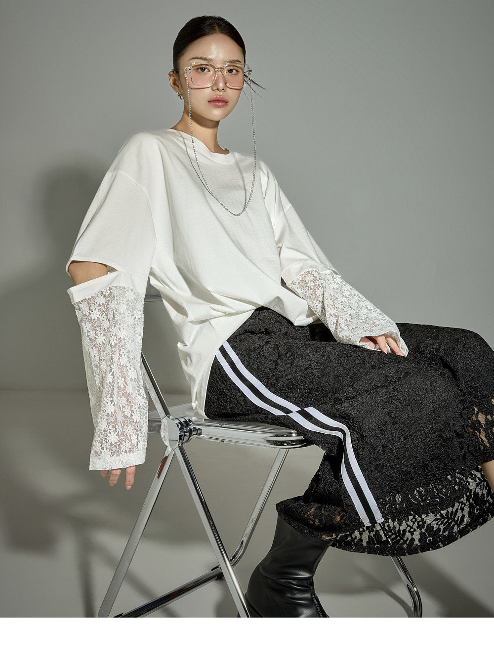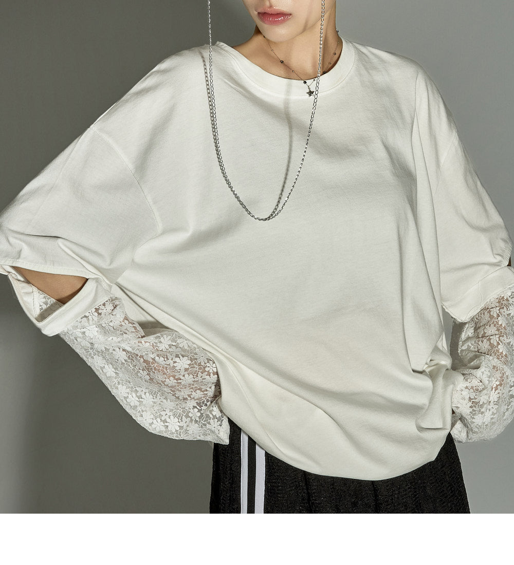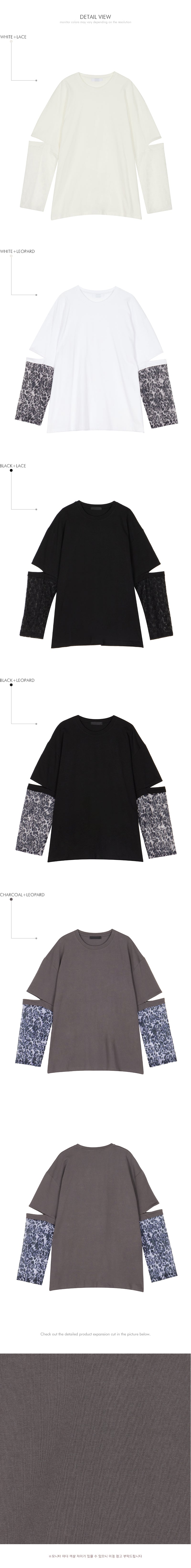 The sleeves feature a unique design with a mix of colored lace and leopard print,